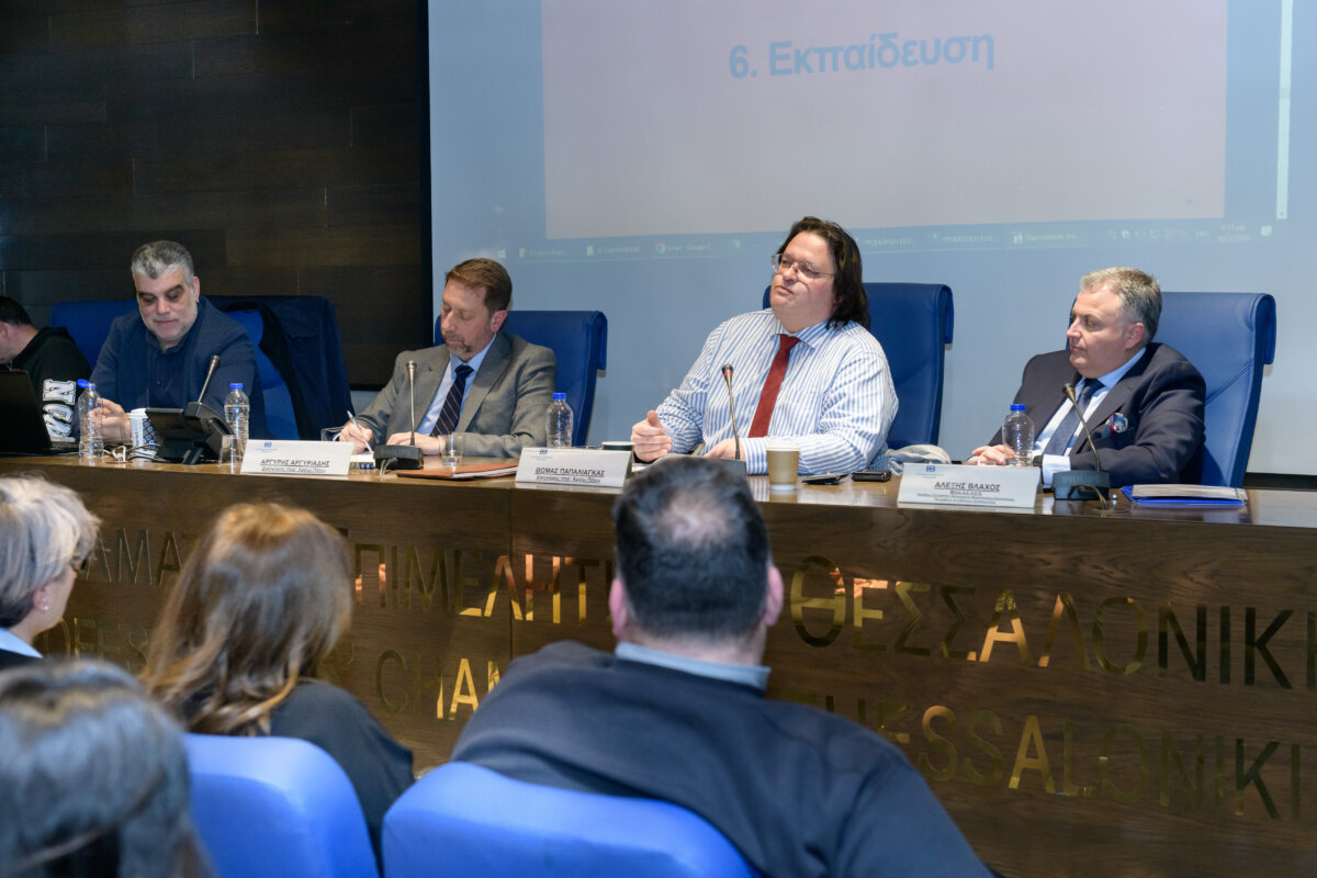 Τον Θωμά Παπαλιάγκα και τον έτερο εισηγητή Αργύρη Αργυριάδη υποδέχθηκε θερμά ο πρόεδρος του Επιμελητηρίου Θεσσαλονίκης Κυριάκος Μερελής και ο πρόεδρο του Τμήματος Λογιστικών Υπηρεσιών Αλέξη Βλάχο.