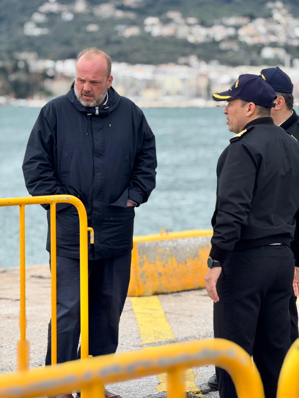 Ο Γενικός Γραμματέας επισκέφθηκε επίσης το τελωνείο Μυτιλήνης στο λιμάνι, ενώ συναντήθηκε με τον Γενικό Αστυνομικό Διευθυντή Βορείου Αιγαίου, Υποστράτηγο κ. Μιχάλη Σεβδυνίδη, τον Αστυνομικό Διευθυντή Λέσβου κ. Κώστα Παπάζογλου, τον Διοικητή της 9ης Περιφερειακής Διοίκησης Λιμενικού Σώματος κ. Ευστράτιο Ψύρρα και τον Λιμενάρχη κ. Γεώργιο Κουλίκα, για την ενίσχυση των ελέγχων και της επιτήρησης.