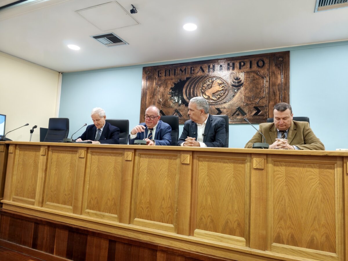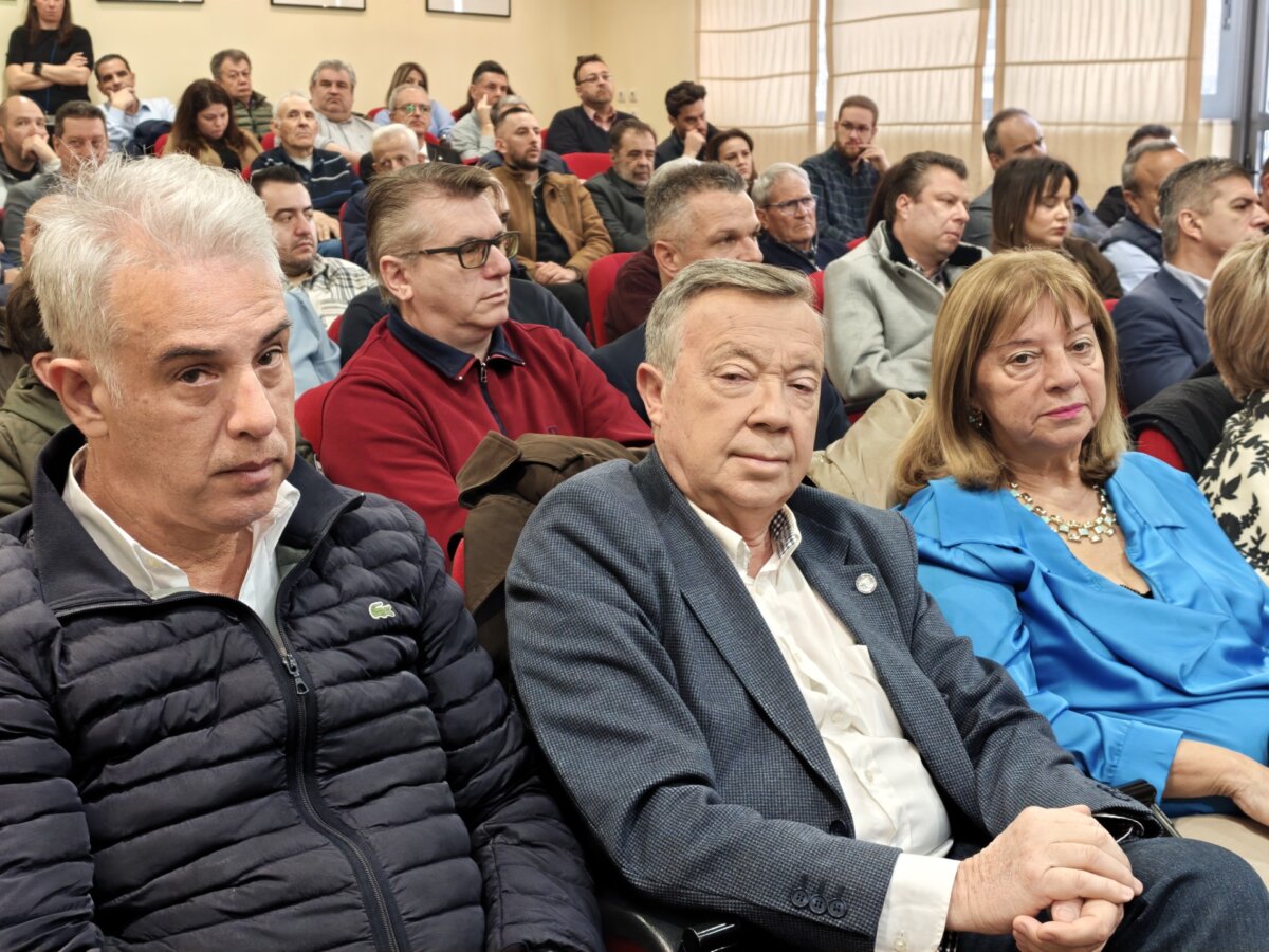 Ομιλητές, οι δύο συντοπίτες Επιχειρηματίες, ο Λευτέρης Σαΐτης της κονσερβοποιίας “Intercomm Foods” και ο Απόστολος Δοντάς των Εκκοκκιστηρίων βάμβακος “Επίλεκτος” και κύριος Ομιλητής ο Στρατηγικός Αναλυτής, Δρ. Νίκος Λυγερός.