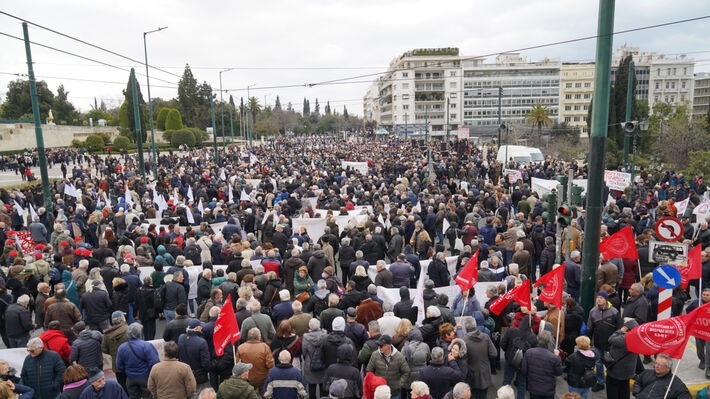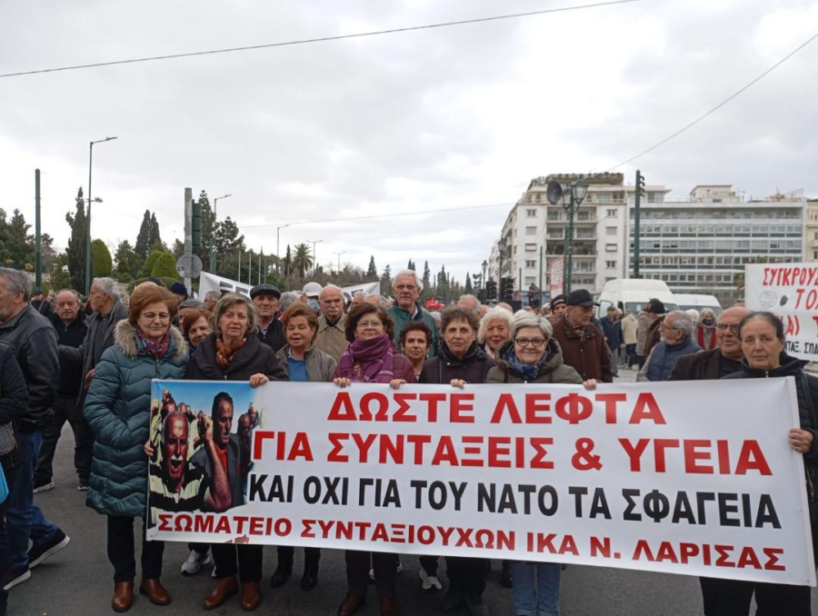 “Εκατοντάδες συνταξιούχοι από το νομό Λάρισας παρευρέθηκαν στο Σύνταγμα και μαζί με όλους τους συνταξιούχους απαίτησαν: Αυξήσεις στους μισθούς και στις συντάξεις, να δοθούν τα δώρα μας, μείωση της τιμής των βασικών αγαθών, μέτρα προστασίας της υγείας και της ζωής μας.