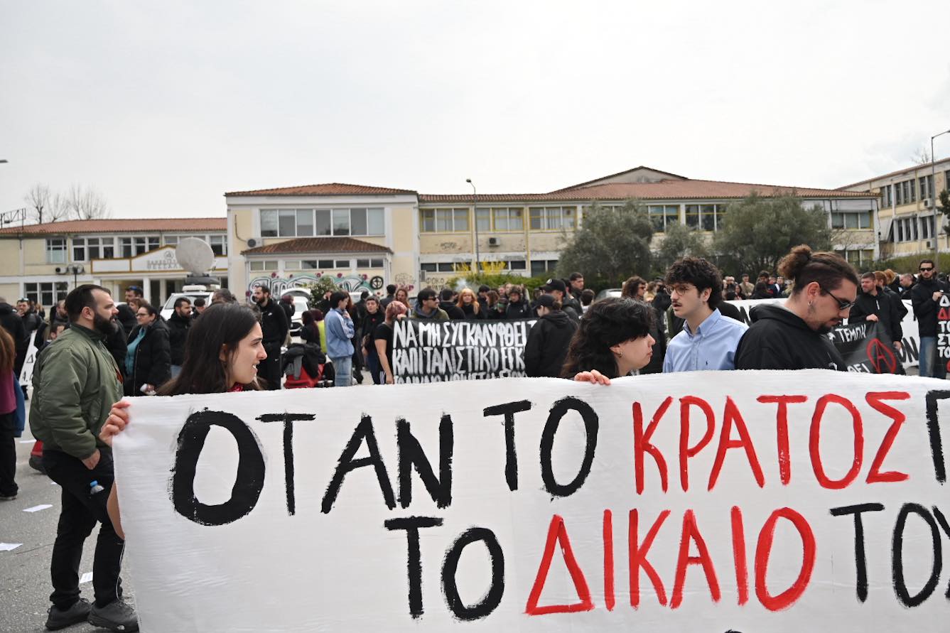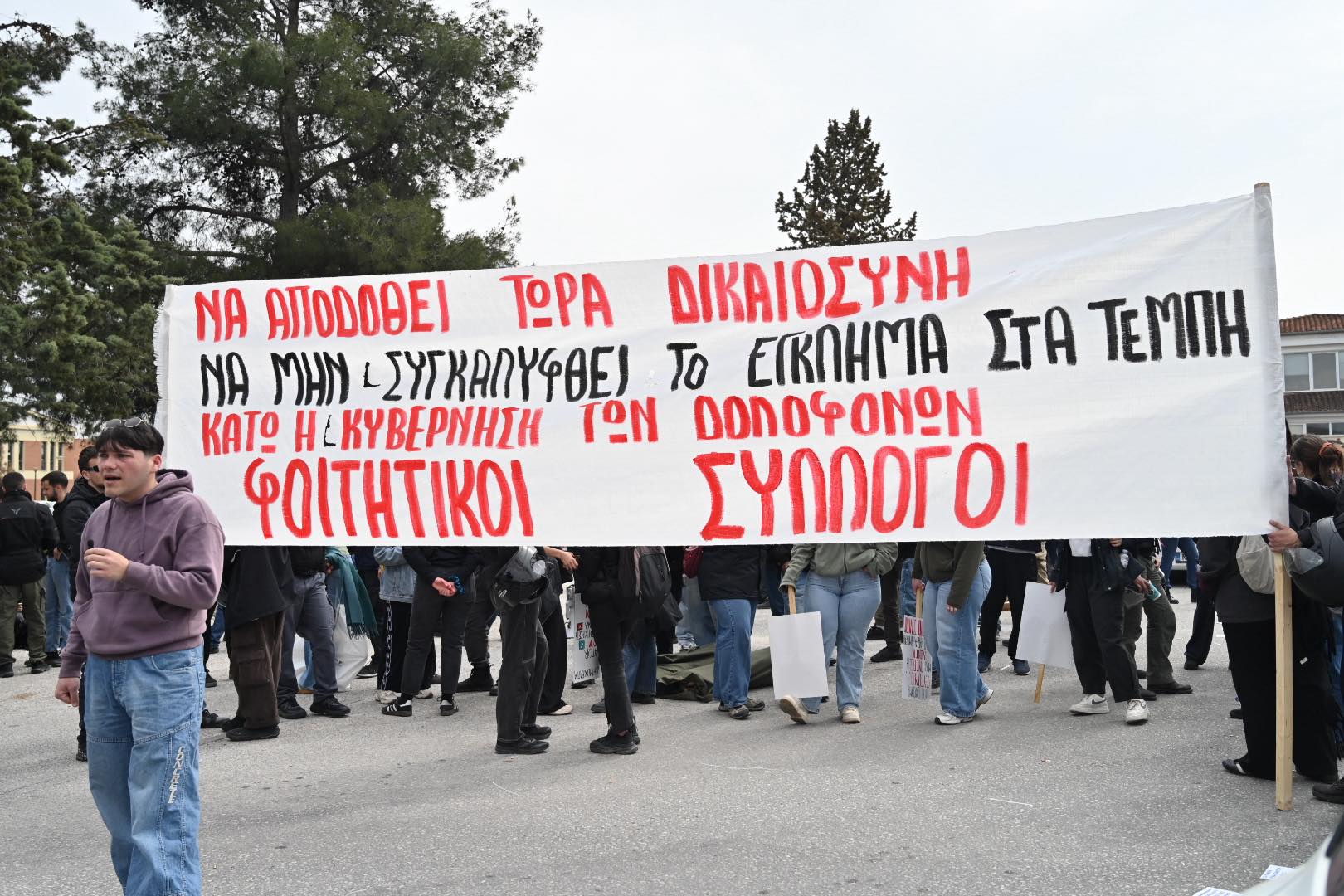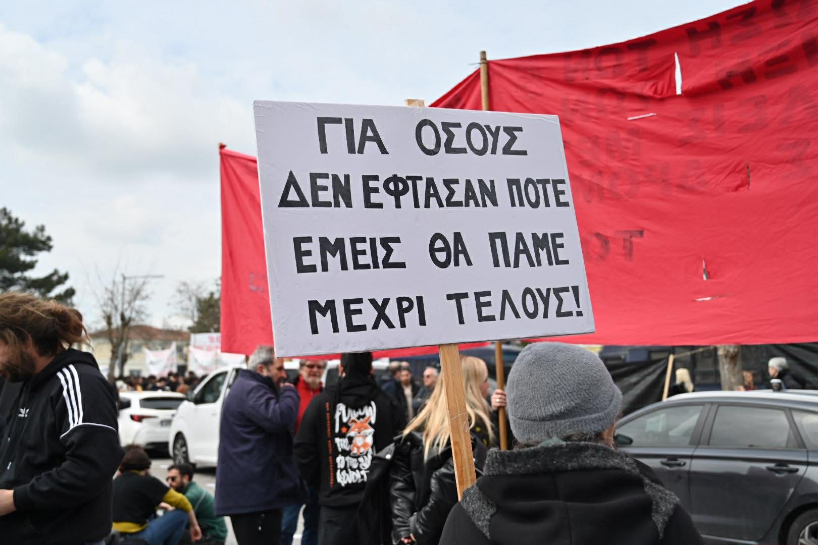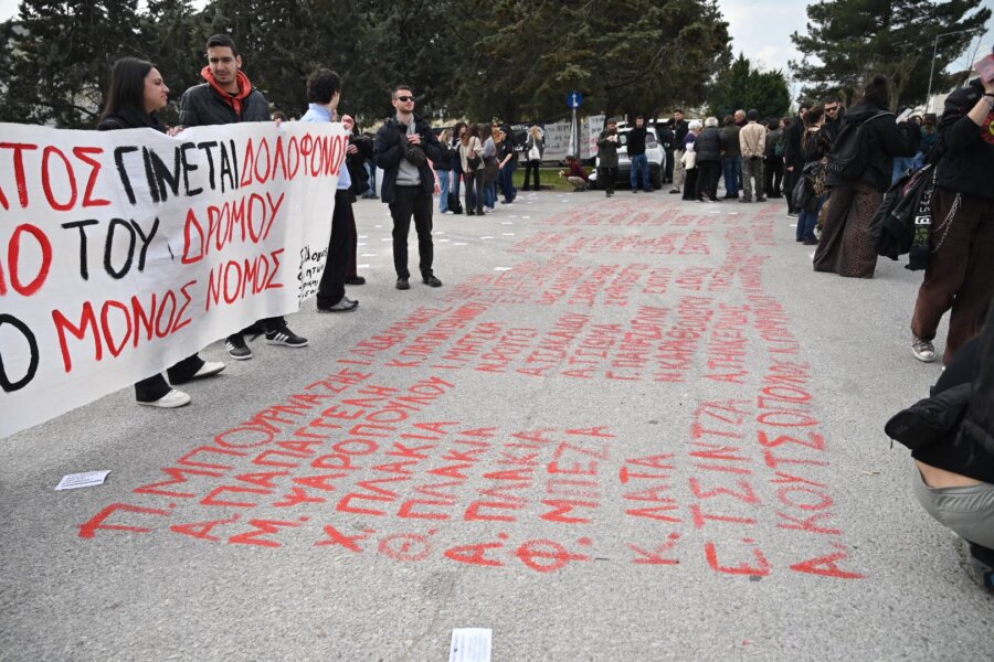 Πλήθος πολιτών συγκεντρώθηκε σήμερα έξω από τις εγκαταστάσεις της Γαιόπολις στη Λάρισα, εκεί όπου σήμερα ξεκίνησε η δίκη, σε μια μαζική κινητοποίηση μνήμης και διαμαρτυρίας για το τραγικό δυστύχημα στα Τέμπη.