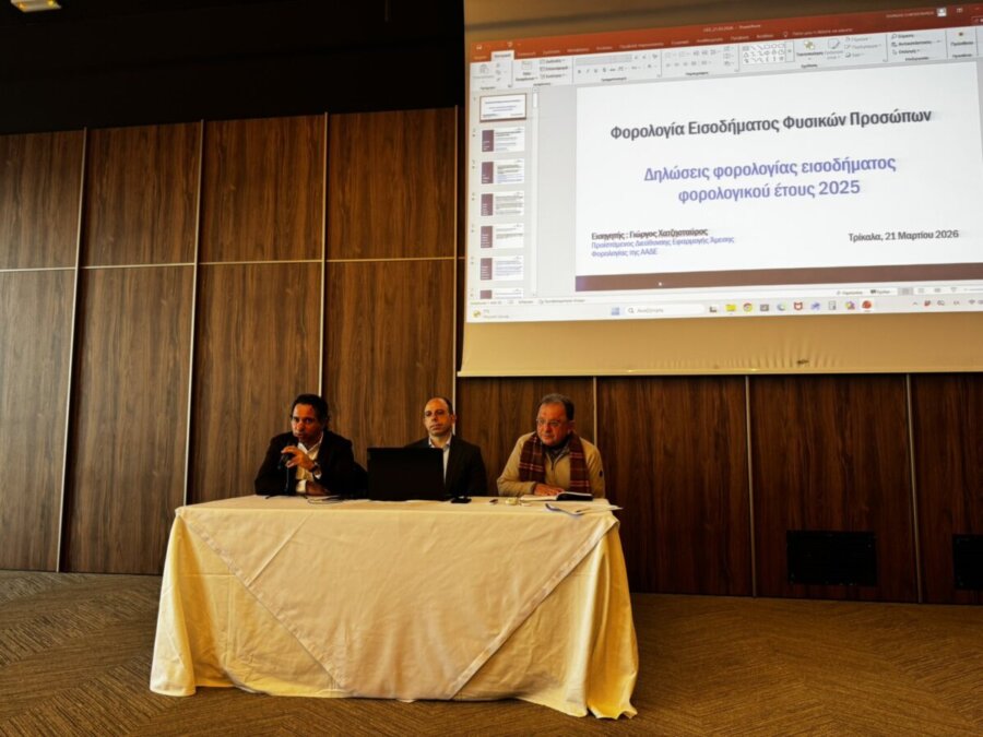 Με μεγάλη επιτυχία και συμμετοχή ολοκληρώθηκε το Σάββατο 21 Μαρτίου 2026, το σεμινάριο του ΠΤ Θεσσαλίας (7ο ΠΤ) του Οικονομικού Επιμελητηρίου της Ελλάδας με θέμα: «Φορολογία Εισοδήματος Φυσικών Προσώπων» στα Τρίκαλα στο ξενοδοχείο ΑΝΑΝΤΙ, με εισηγητή τον: