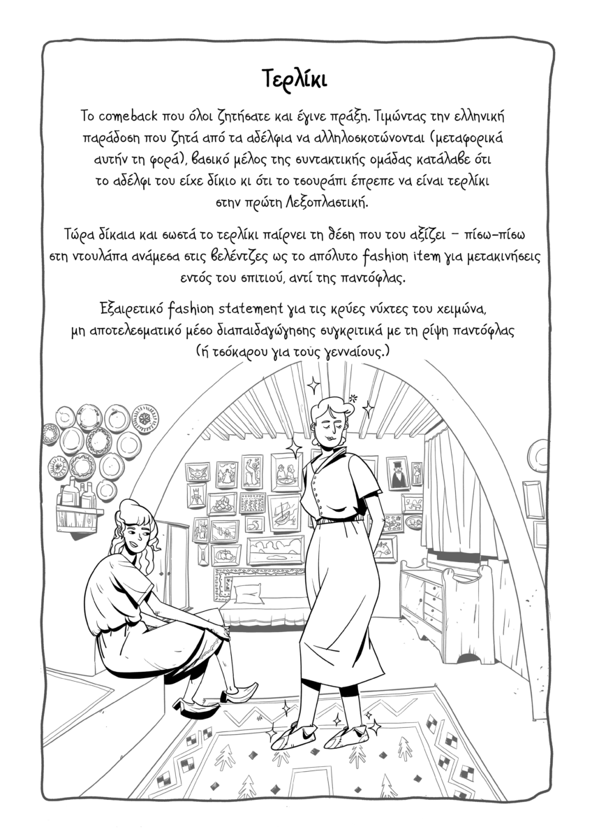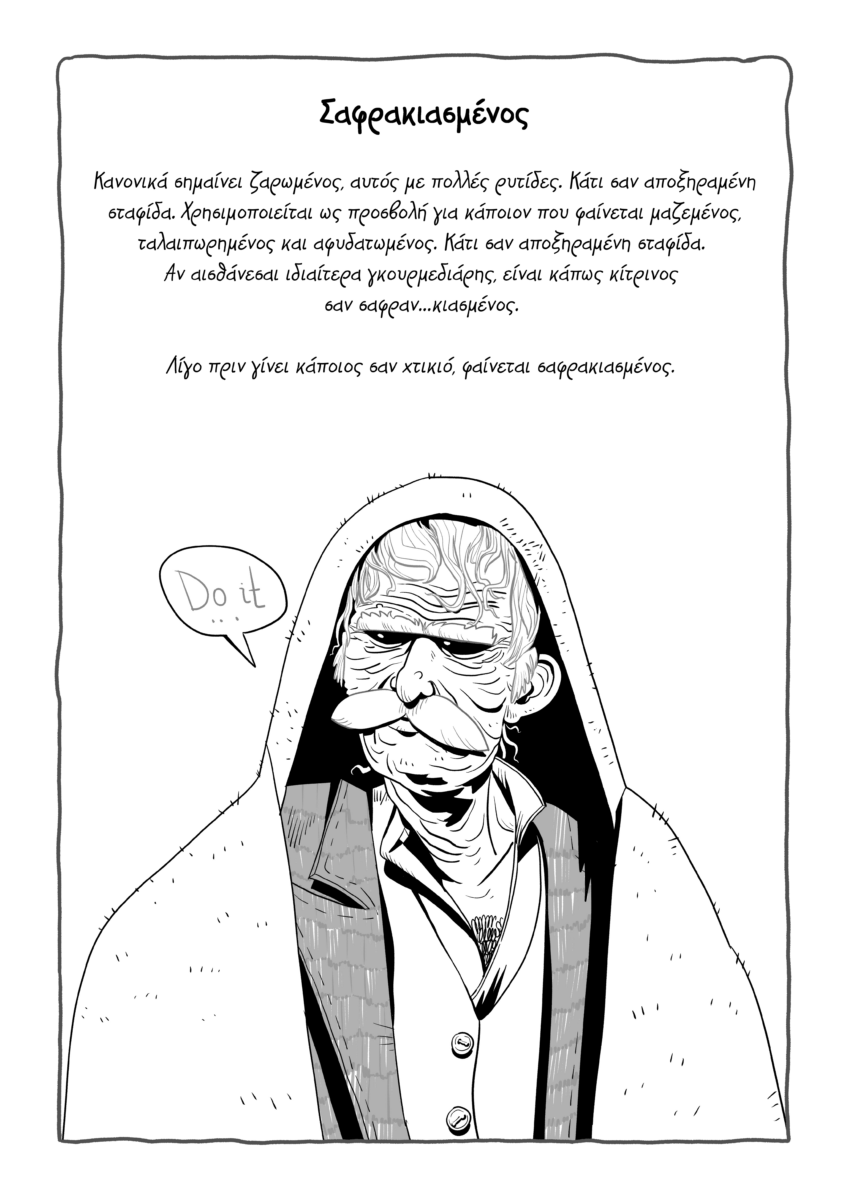 Η έκθεση αποτελεί πρωτοβουλία νέων δημιουργών από τη Λάρισα και παρουσιάζει περισσότερες από 100 πρωτότυπες εικονογραφήσεις, εμπνευσμένες από λέξεις και ιδιώματα της Λάρισας, του Θεσσαλικού κάμπου και της Κρήτης. Λέξεις της καθημερινής ομιλίας και της προφορικής παράδοσης μετατρέπονται σε εικόνες και μικρές εικαστικές αφηγήσεις, δημιουργώντας έναν ιδιαίτερο εικαστικό χάρτη της γλώσσας και των τόπων από τους οποίους προέρχεται.