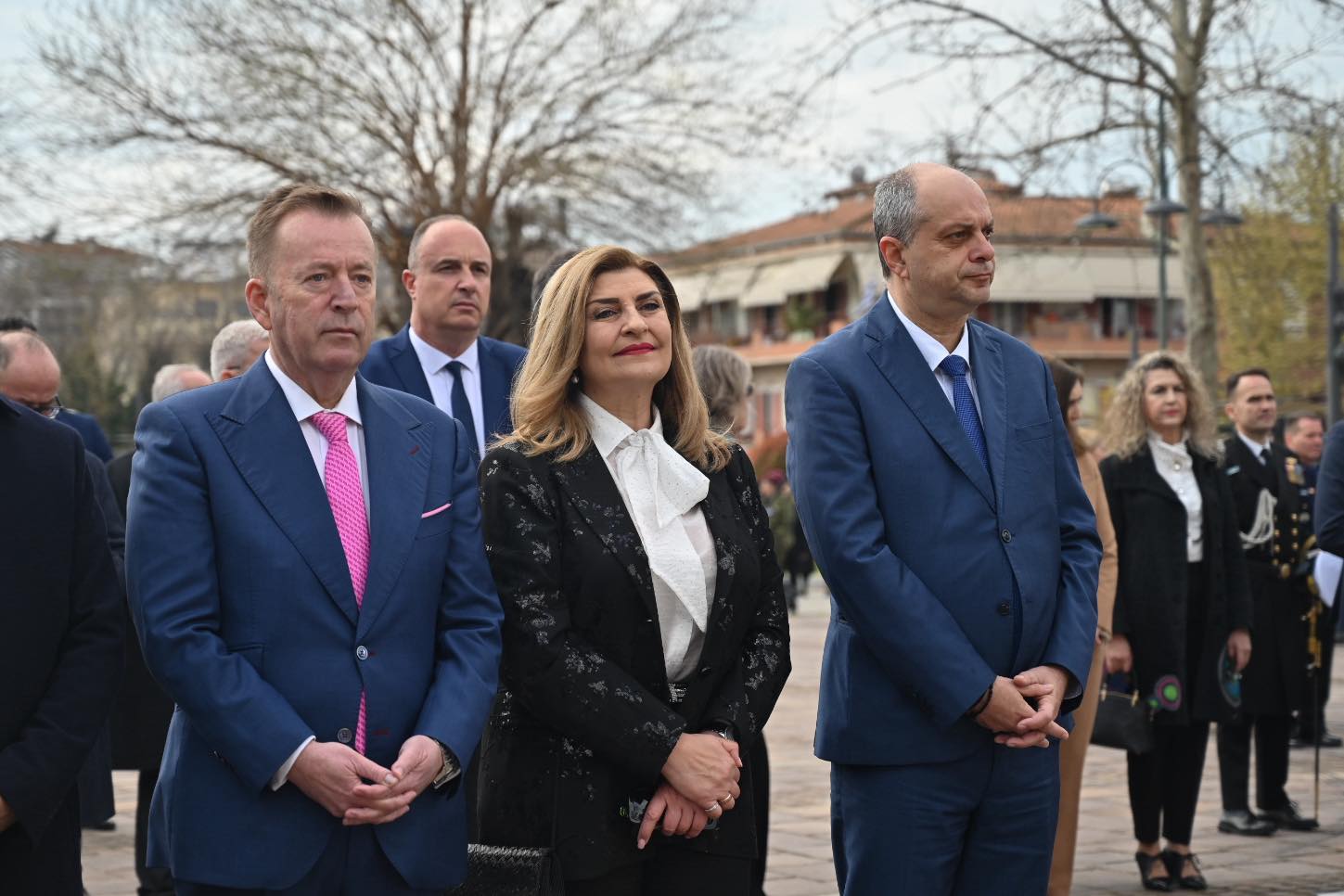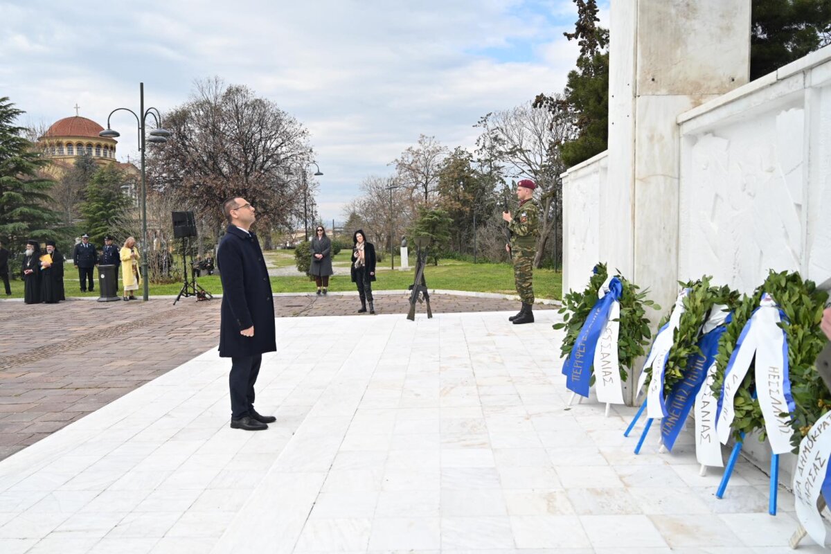 Αμέσως μετά την πανηγυρική δοξολογία που τελέστηκε στον Ιερό Μητροπολιτικό Ναό του Αγίου Αχιλλίου, εκπρόσωποι πολιτικών, στρατιωτικών και τοπικών αρχών μετέβησαν στο Ηρώο Πεσόντων της πόλης.