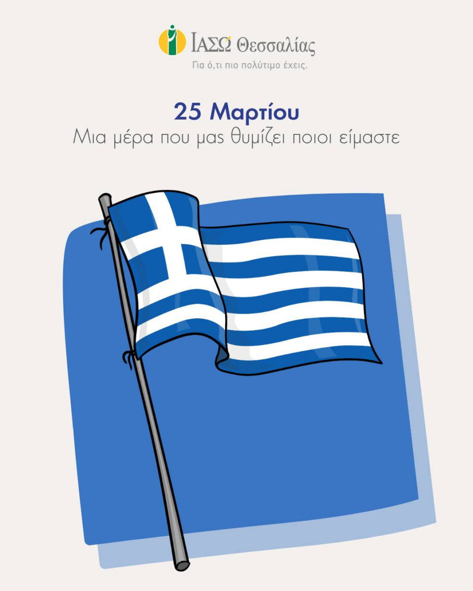 Μήνυμα από το ΙΑΣΩ Θεσσαλίας για την Εθνική Επέτειο της 25ης Μαρτίου αναφέρει: