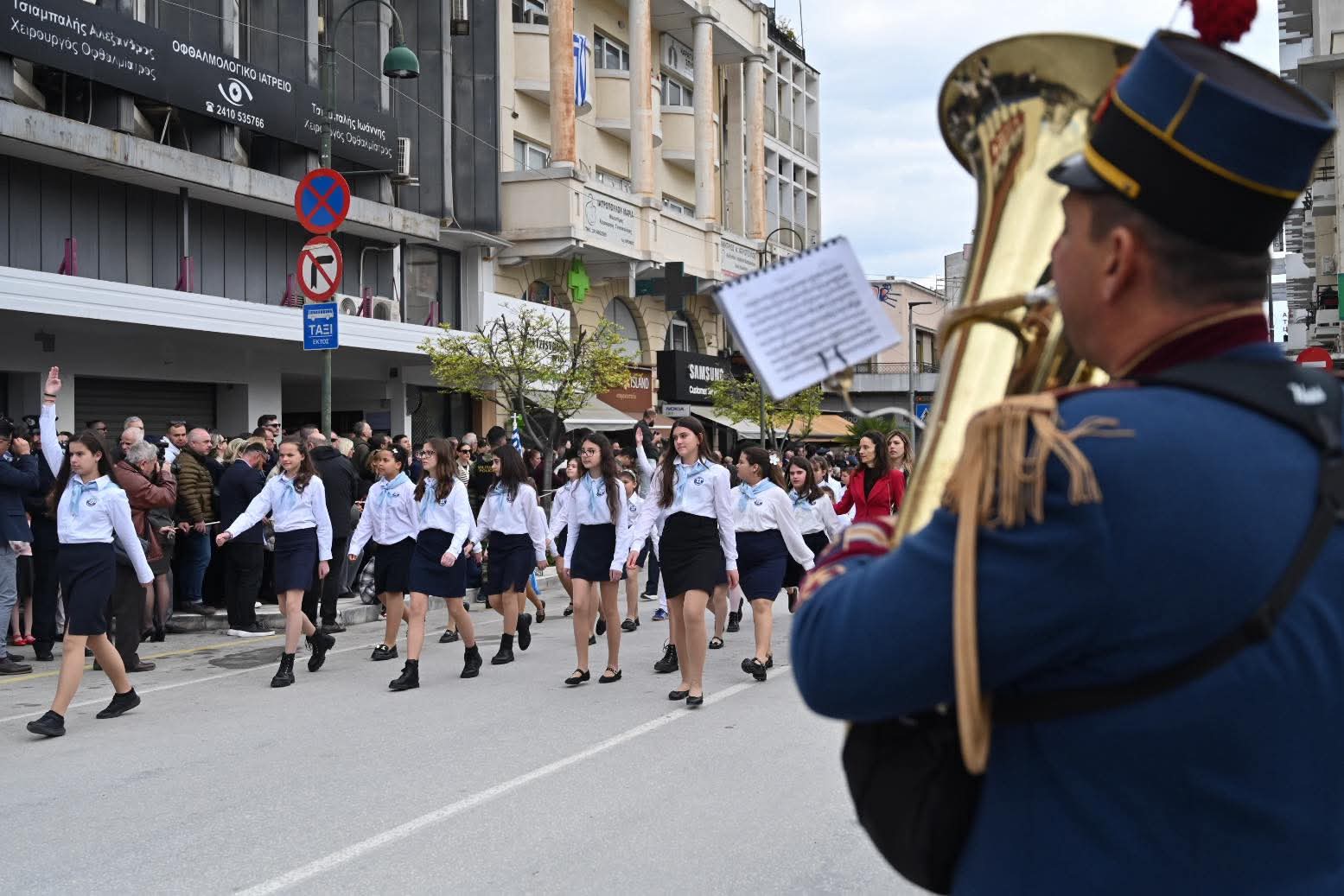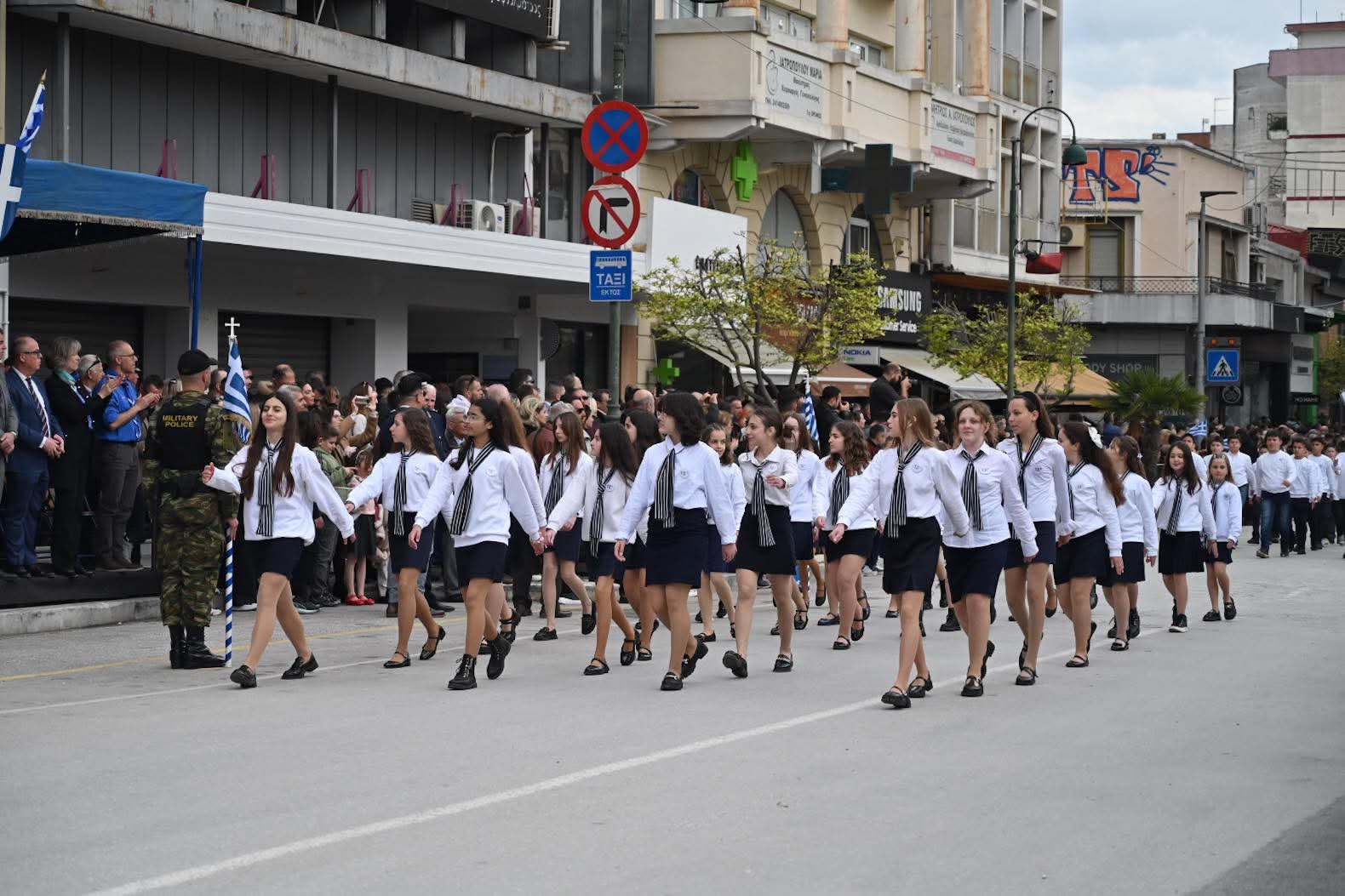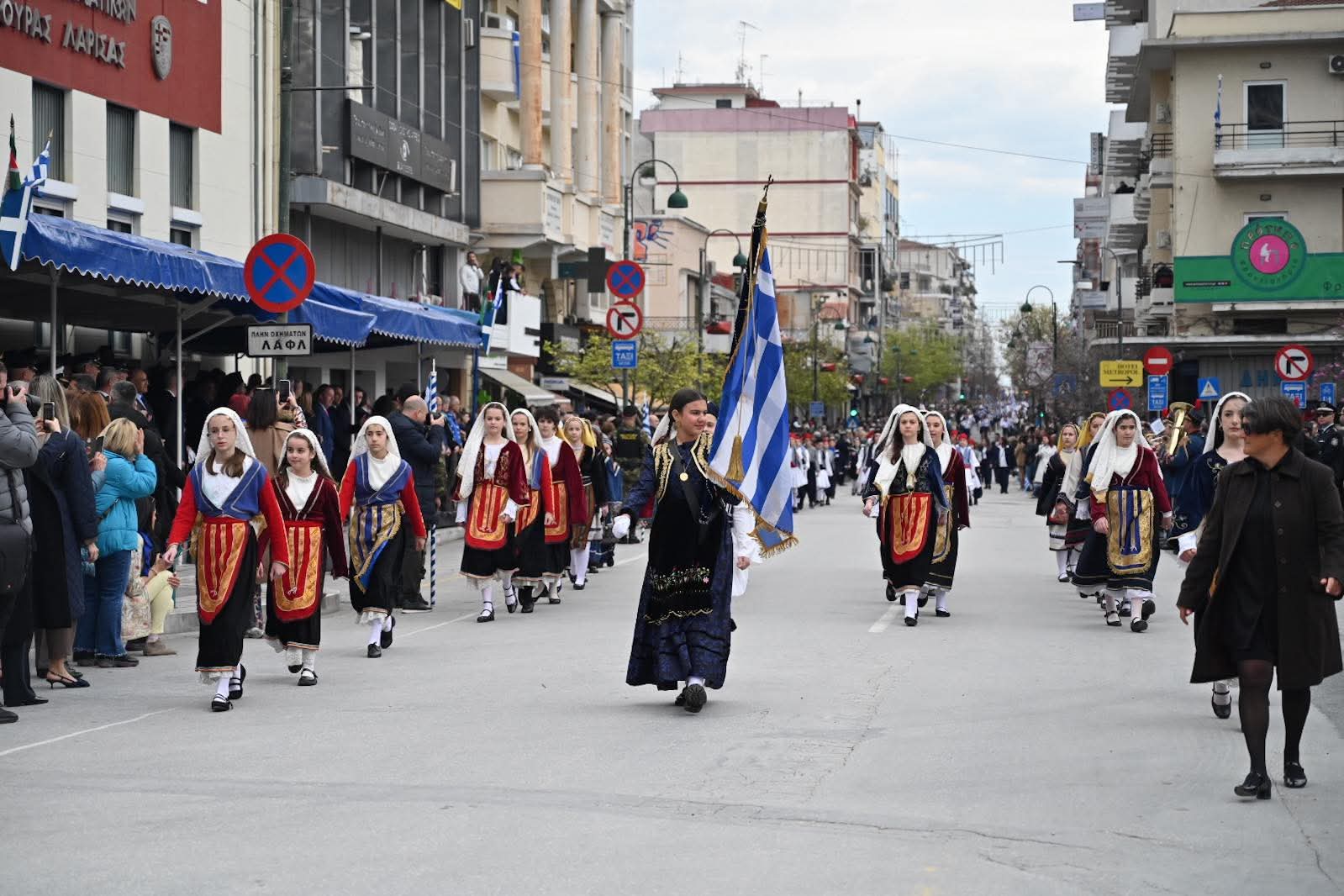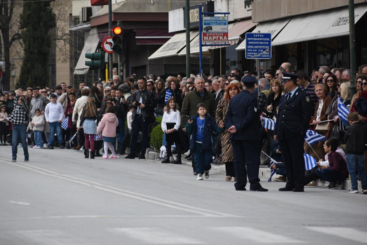 Εκατοντάδες Λαρισαίοι παρακολούθησαν την παρέλαση χειροκροτώντας θερμά όλα τα τμήματα, που και φέτος έδωσαν το παρών στις εκδηλώσεις.