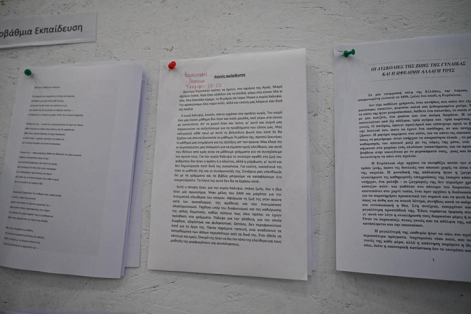 Τα έργα των μαθητών εκτέθηκαν στο φουαγιέ του Χατζηγιάννειου Πνευματικού Κέντρου, δίνοντας στο κοινό την ευκαιρία να γνωρίσει από κοντά τη δημιουργικότητα και τη ματιά των νέων πάνω στην ιστορία και τον ρόλο της γυναίκας.