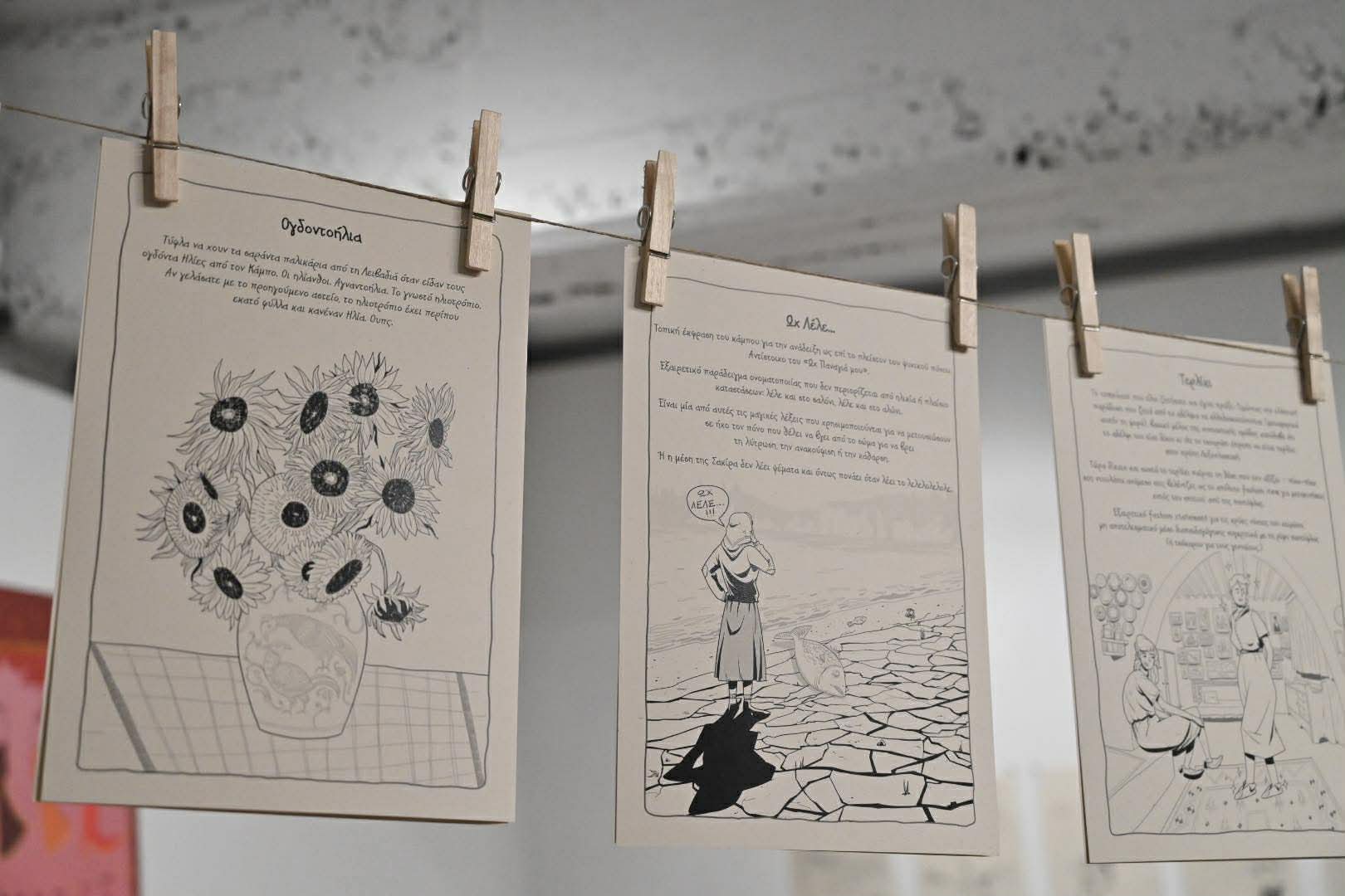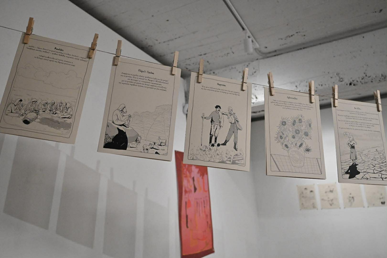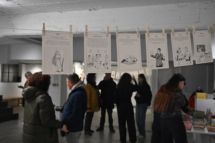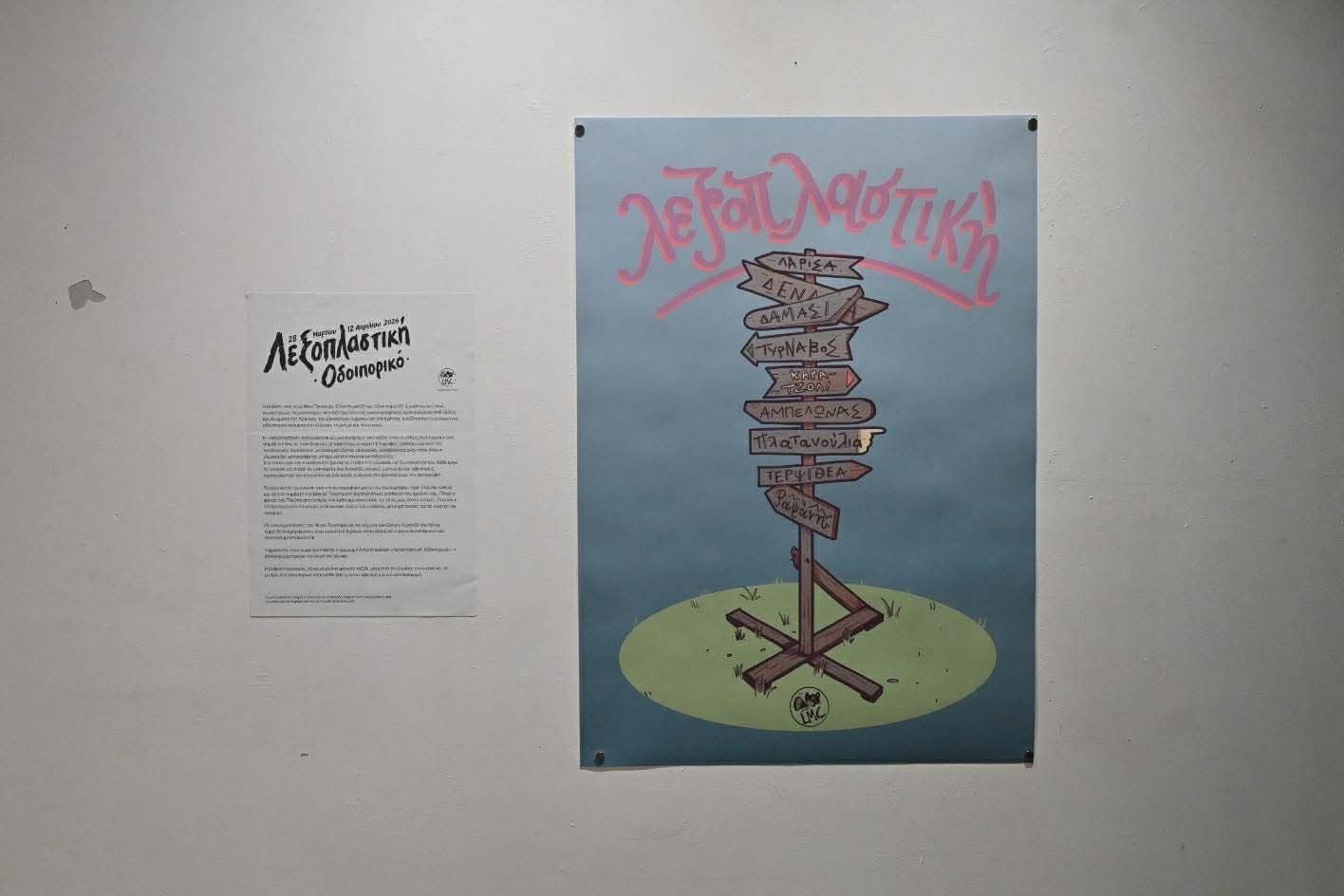 Η έκθεση, έργο των Νίκου Τσικούρα, Ελένης Κυρατζή και Θάνου Κυρατζή (Loudmouse Crew), θα διαρκέσει έως τις 12 Απριλίου και περιλαμβάνει περισσότερες από 100 πρωτότυπες εικονογραφήσεις, εμπνευσμένες από λέξεις και ιδιώματα της Λάρισας, του θεσσαλικού κάμπου και της Κρήτης.