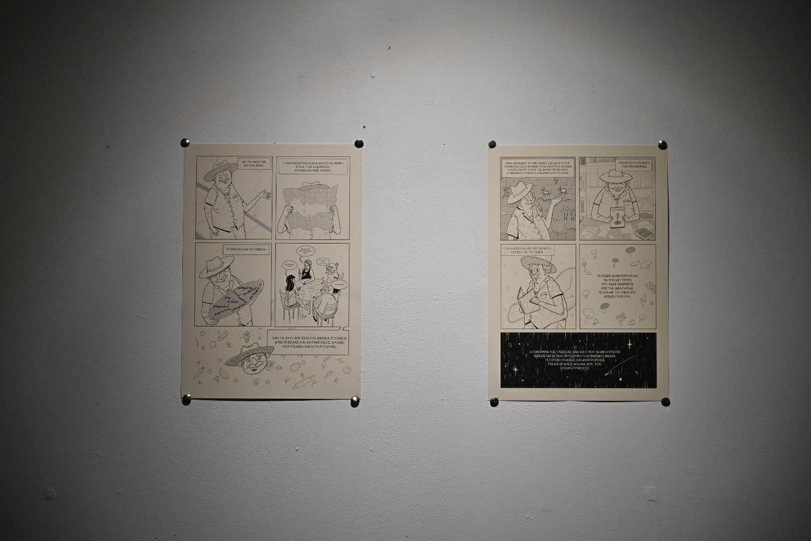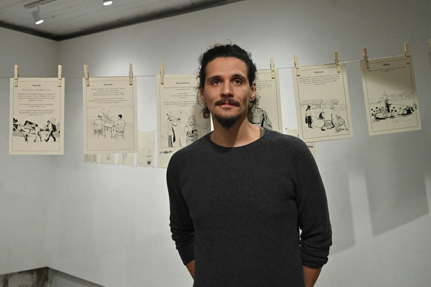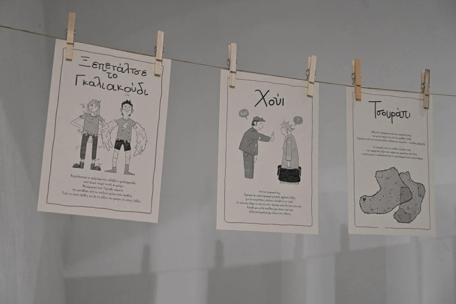 Η έκθεση, έργο των Νίκου Τσικούρα, Ελένης Κυρατζή και Θάνου Κυρατζή (Loudmouse Crew), θα διαρκέσει έως τις 12 Απριλίου και περιλαμβάνει περισσότερες από 100 πρωτότυπες εικονογραφήσεις, εμπνευσμένες από λέξεις και ιδιώματα της Λάρισας, του θεσσαλικού κάμπου και της Κρήτης.