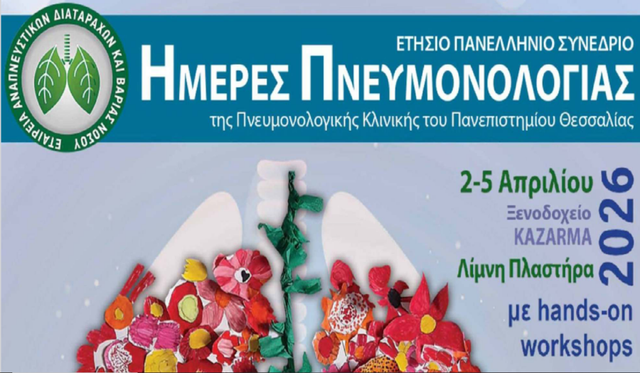 Το ετήσιο συνέδριο «ΗΜΕΡΕΣ ΠΝΕΥΜΟΝΟΛΟΓΙΑΣ 2026» της Πνευμονολογικής Κλινικής του Πανεπιστημίου Θεσσαλίας, που θα πραγματοποιηθεί από τις 2 έως τις 5 Απριλίου στο ξενοδοχείο Kazarma, στη μοναδικής ομορφιάς Λίμνη Πλαστήρα.
