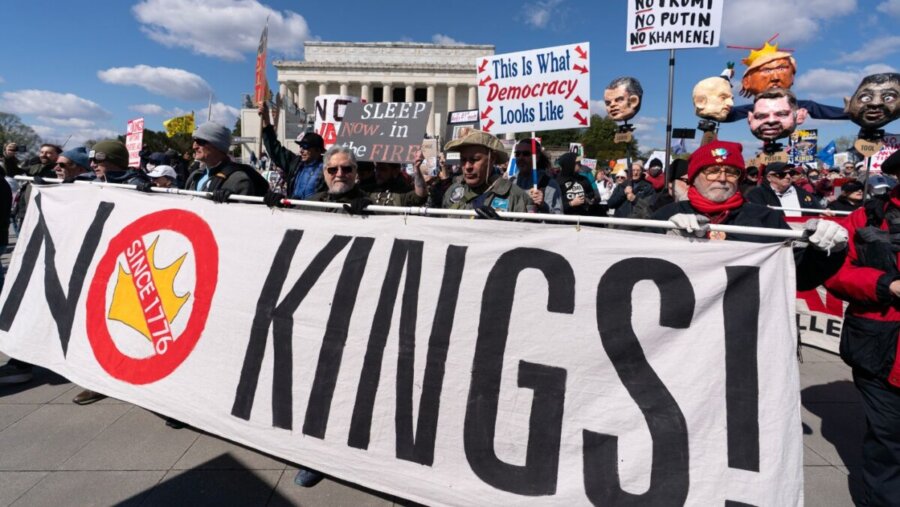 «Ο Τραμπ θέλει να μας κυβερνά ως τύραννος. Αλλά αυτή είναι η Αμερική και η εξουσία ανήκει στον λαό – όχι στους επίδοξους βασιλιάδες ή στους δισεκατομμυριούχους φίλους τους», ανέφεραν οι διοργανωτές.