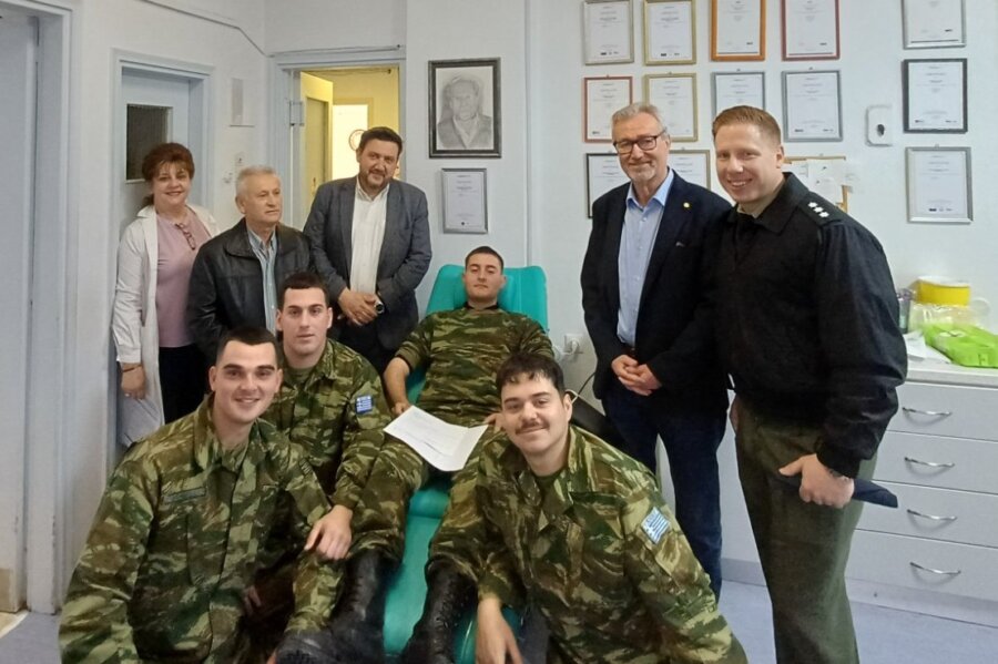 Ευχαριστούν επίσης το ιατρικό και νοσηλευτικό προσωπικό του Νοσοκομείου για την ευγένεια και τον επαγγελματισμό τους αλλά και τον Διοικητή αυτού κ. Γρηγόριο Βλαχάκη που αφιέρωσε λίγο χρόνο να συνομιλήσει με τους αιμοδότες μας και να φωτογραφηθεί με τα στρατευμένα μας νιάτα.