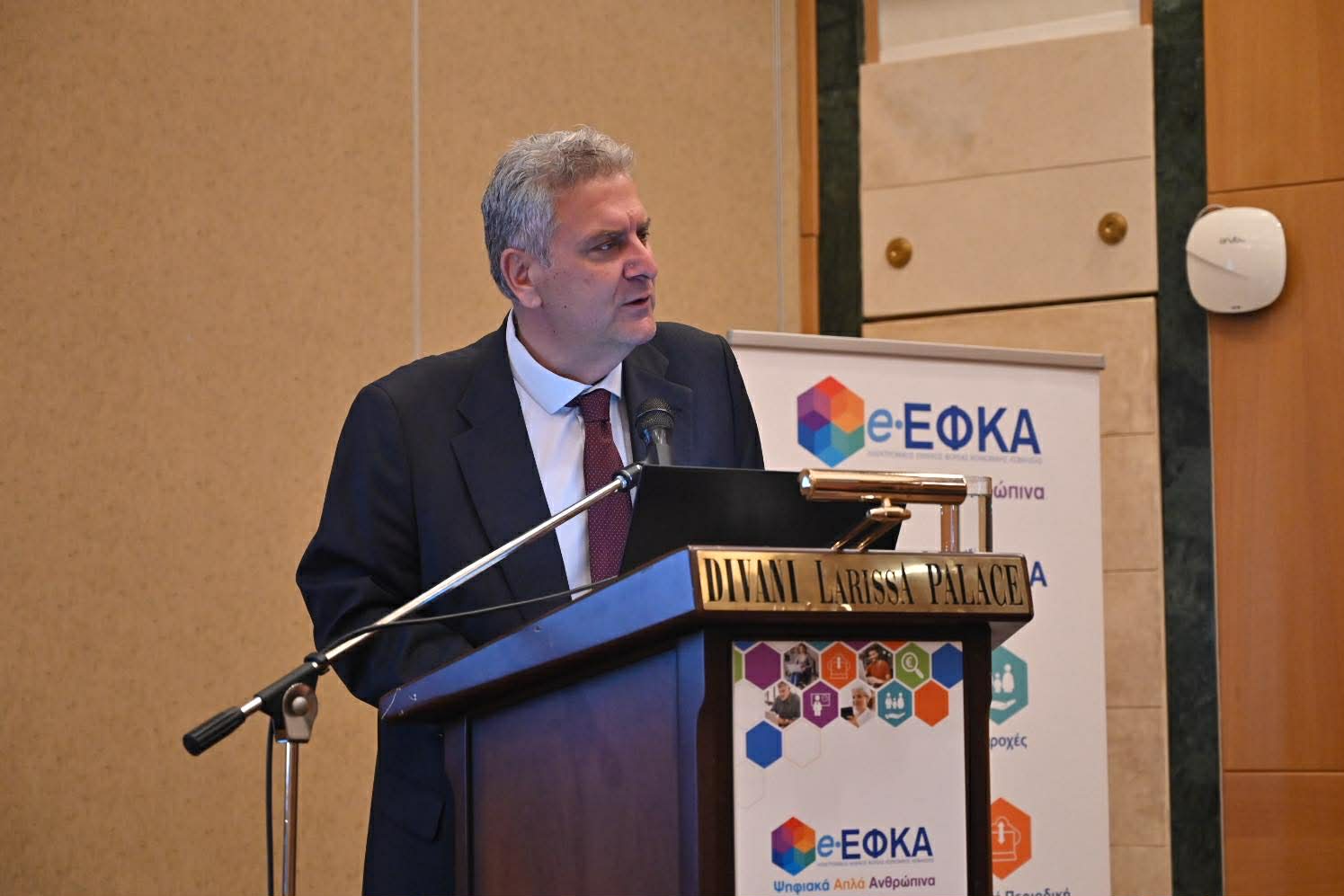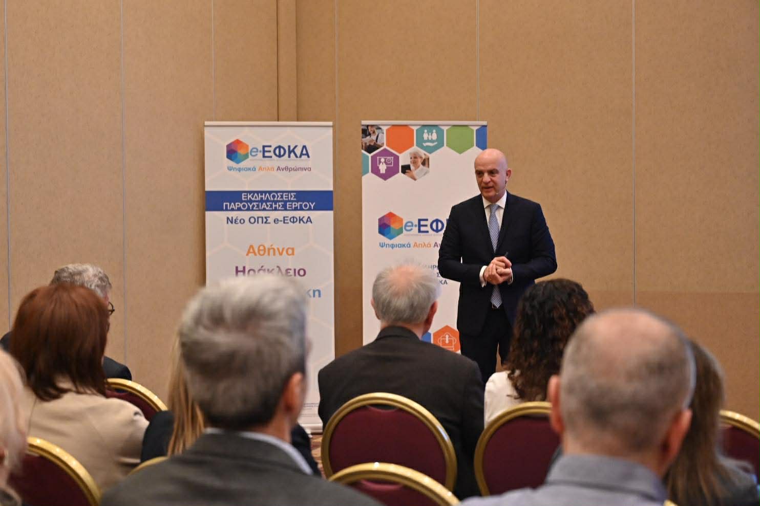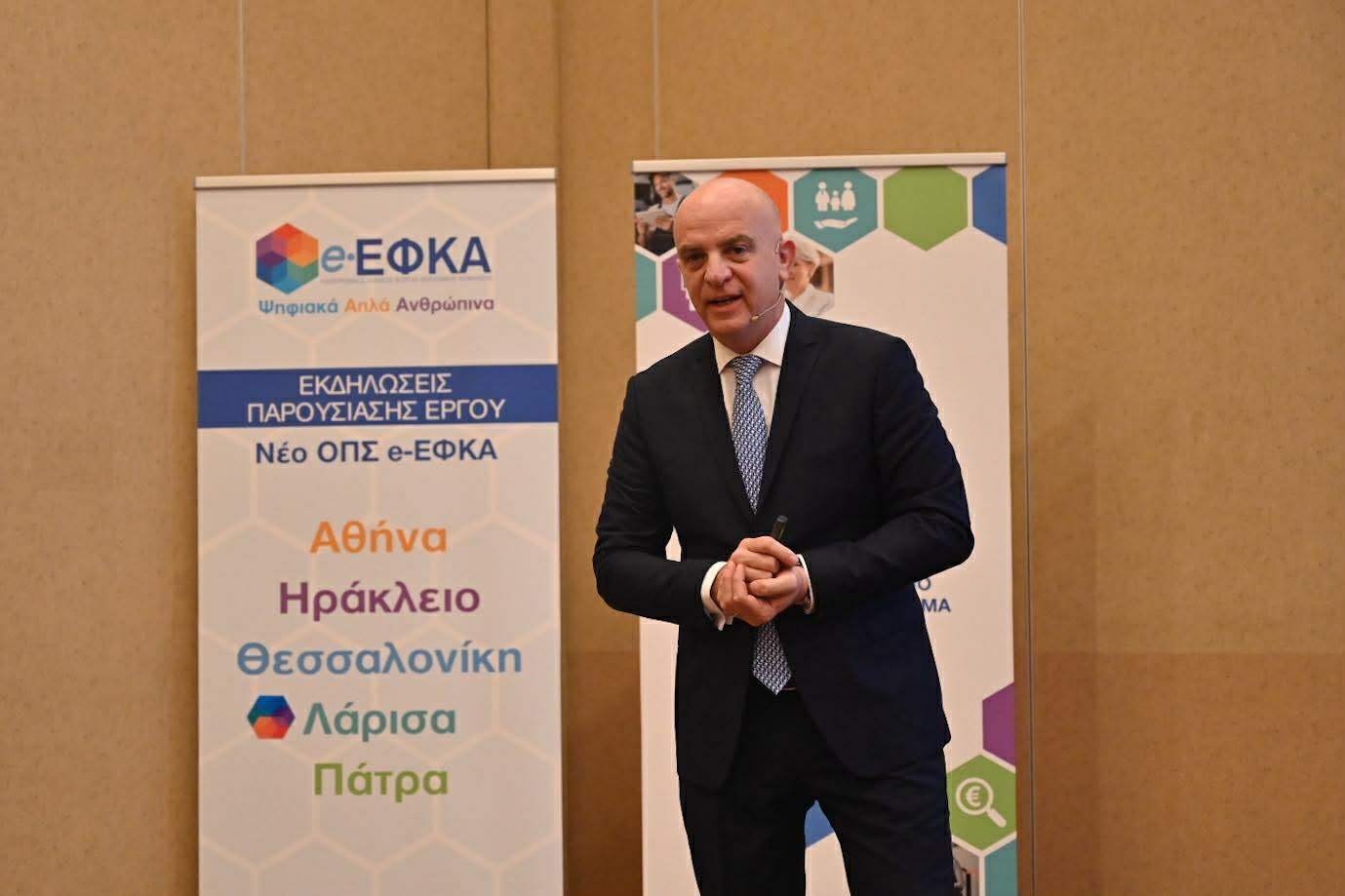 Την κεντρική παρουσίαση πραγματοποίησε ο Διοικητής του e-ΕΦΚΑ, Δρ. Αλέξανδρος Βαρβέρης, ο οποίος ανέπτυξε τις νέες ψηφιακές δυνατότητες του συστήματος και τα οφέλη για πολίτες, επιχειρήσεις και επαγγελματίες.
