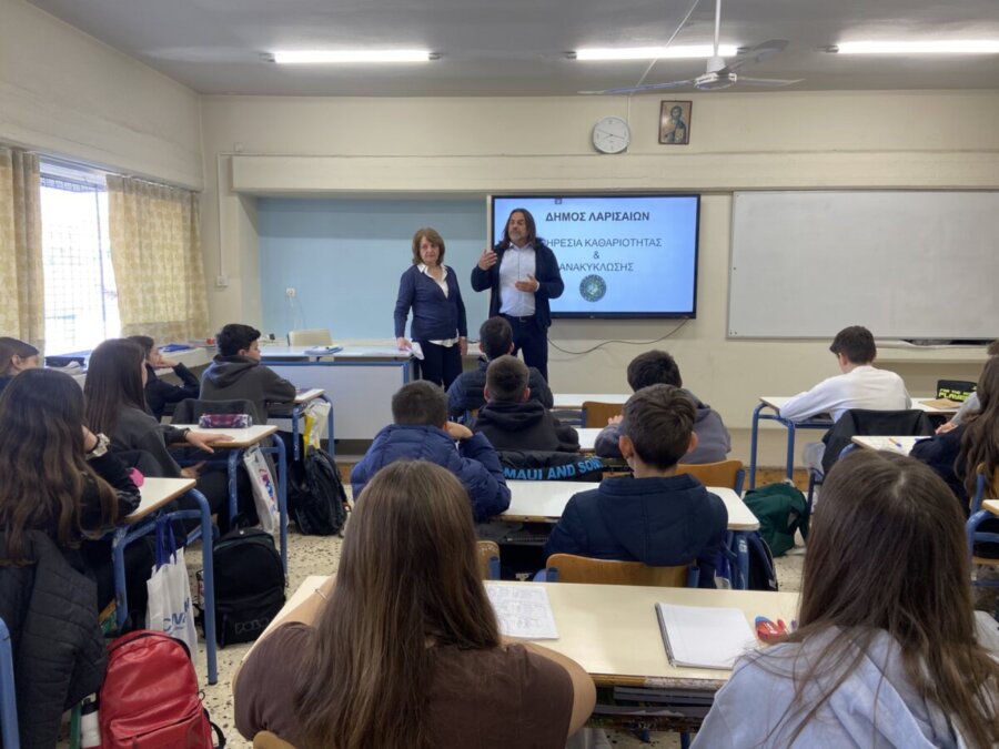 Στο πλαίσιο του περιβαλλοντικού προγράμματος «Μικρές πράξεις, μεγάλες αλλαγές – το ταξίδι της ανακύκλωσης», που υλοποιείται στο Πρότυπο Γυμνάσιο Λάρισας από τις εκπαιδευτικούς Παπαγεωργίου Βασιλική, Ξενοπούλου Παρασκευή και την Διευθύντρια κα Λιάπη Στεργιανή, πραγματοποιήθηκε την Τρίτη 31 Μαρτίου 2026 ενημερωτική δράση για τους μαθητές του τμήματος Α2.