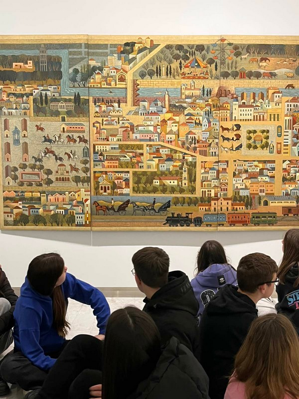 Στη συνέχεια, η επίσκεψη στη «Δημοτική Πινακοθήκη-Ι. Κατσίγρα» έφερε τους μαθητές/μαθήτριες σε επαφή με τον κόσμο των εικαστικών τεχνών. Μέσα από την περιήγηση της μόνιμης έκθεσης της Συλλογής Κατσίγρα «ΕΠΑΝΑΣΥΝΔΕΣΗ/RECONNECT», είχαν την ευκαιρία να παρατηρήσουν έργα ζωγραφικής και να συζητήσουν για τα μηνύματα, τα συναισθήματα και τις τεχνικές των καλλιτεχνών βιώνοντας μια νέα αφήγηση στην οποία πρωταγωνιστούν ο τόπος και οι άνθρωποι στην ιστορική εξέλιξη των μεταξύ τους σχέσεων «Το Πνεύμα του Τόπου», τα «Ιδανικά Πλάσματα», η «Οικειότητα» και η «Αγωνιστικότητα».