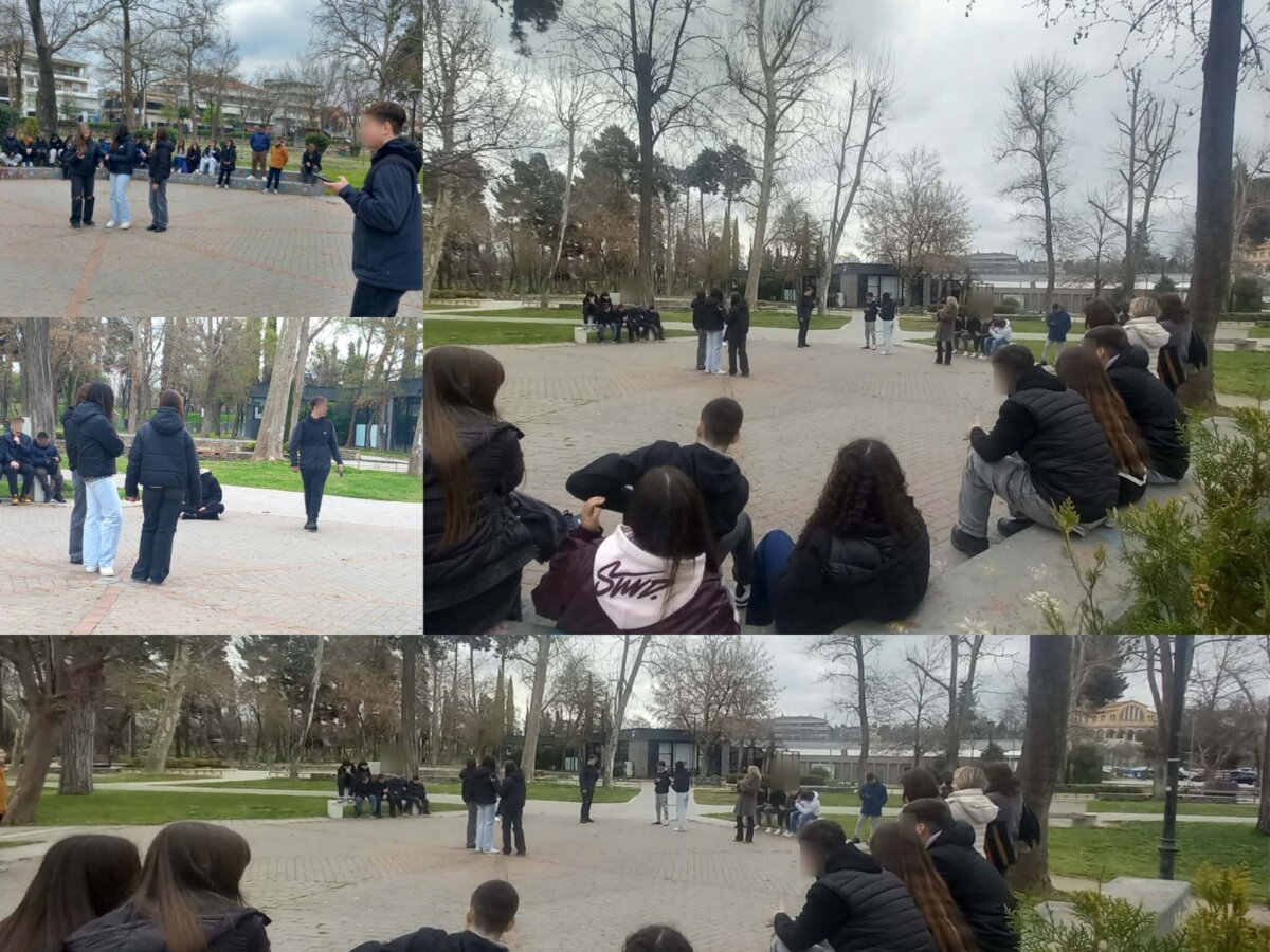 Στο μικρό υπαίθριο θεατράκι – στις πέτρινες κερκίδες δίπλα στον Βοτανικό Κήπο στον χώρο του Αλκαζάρ- οι μαθητές/μαθήτριες ανέλαβαν δράση! Μέσα από ένα θεατρικό δρώμενο βασισμένο στην «Ελένη» του Ευριπίδη, προσπάθησαν να προσεγγίσουν το βαθύ αντιπολεμικό μήνυμα του ποιητή. Σε μια συγκινητική αναπαράσταση, τα παιδιά συνειδητοποίησαν τη ματαιότητα των συγκρούσεων: το πώς ένας πολυετής και αιματηρός πόλεμος μπορεί να γίνει «για ένα πουκάμισο αδειανό, για μιαν Ελένη» — για ένα είδωλο, μια νεφέλη, το απόλυτο τίποτα.