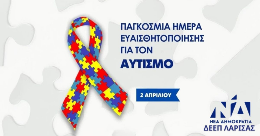 Η Δ.Ε.Ε.Π. Νέας Δημοκρατίας Λάρισας τιμά τη σημερινή Παγκόσμια Ημέρα Ευαισθητοποίησης για τον Αυτισμό «αναδεικνύοντας τη σημασία της αποδοχής, και της ισότιμης συμμετοχής όλων των πολιτών στην κοινωνική και επαγγελματική ζωή.
