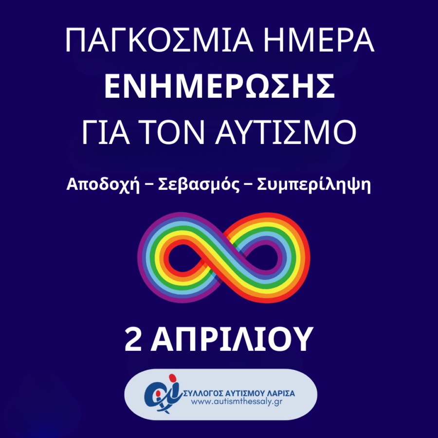 Σε ανακοίνωση του Συλλόγου Αυτισμού Λάρισας με αφορμή την Παγκόσμια Ημέρα Ευαισθητοποίησης και Ενημέρωσης για τον αυτισμό, αναφέρονται τα ακόλουθα: