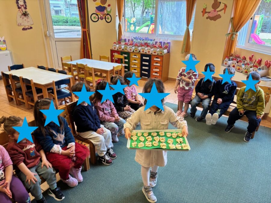 “Πλάθοντας Λαζαράκια” Τα παιδιά συμμετείχαν ενεργά στο παραδοσιακό έθιμο, ζυμώνοντας τα δικά τους «Λαζαράκια». Το παιχνίδι με το ζυμάρι αποτελεί μια εξαιρετική άσκηση λεπτής κινητικότητας και οπτικοκινητικού συντονισμού. Οι μυρωδιές από τα μπαχαρικά και η αφή του ζυμαριού προσφέρουν πλούσια ερεθίσματα που βοηθούν στην αισθητηριακή ολοκλήρωση , ενώ ταυτόχρονα συνδέουν τα παιδιά βιωματικά με την πολιτισμική μας κληρονομιά.