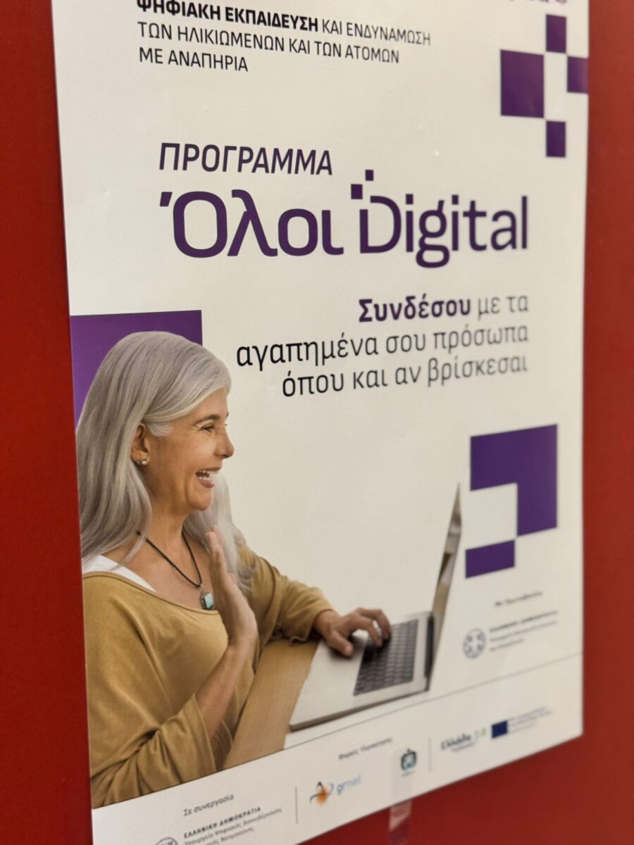 Το πρόγραμμα «Όλοι Digital» αποτελεί εθνική πρωτοβουλία Ψηφιακής Ενδυνάμωσης Ηλικιωμένων του Υπουργείο Κοινωνικής Συνοχής και Οικογένειας, με φορείς υλοποίησης την ΕΔΥΤΕ, εποπτευόμενο φορέα του Υπουργείο Ψηφιακής Διακυβέρνησης, και χρηματοδοτείται από το Εθνικό Σχέδιο Ανάκαμψης και Ανθεκτικότητας «Ελλάδα 2.0», με τη συγχρηματοδότηση της Ευρωπαϊκής Ένωσης.