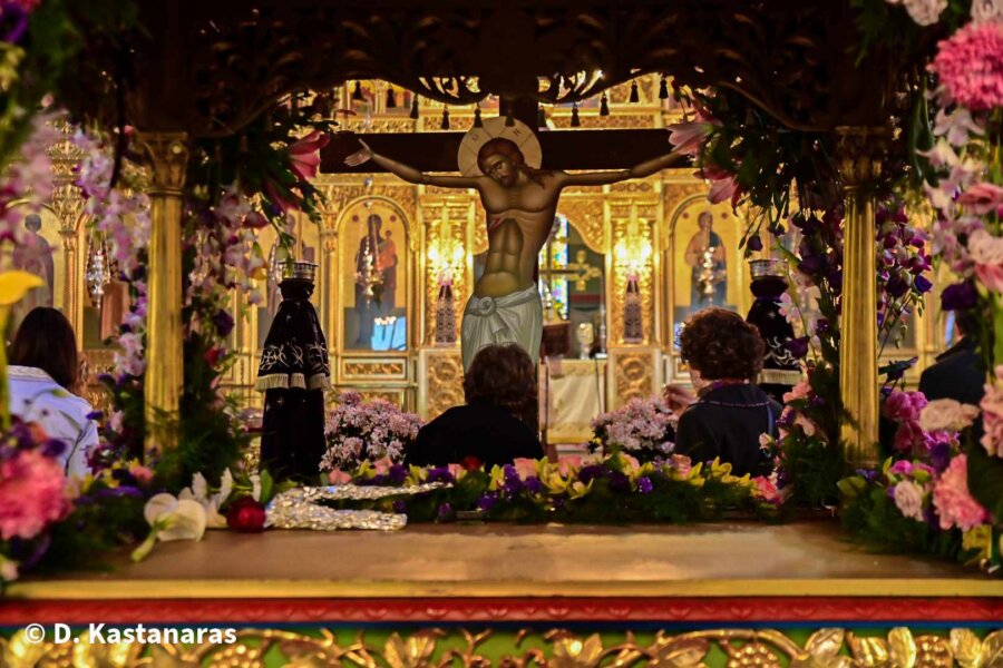 -7.00 μ.μ. η Ακολουθία των Αγίων Παθών. (Μετά την ακολουθία θα ψαλούν τα εγκώμια στις 11.30 μμ και ο ναός θα είναι ανοιχτός όλο το βράδυ για όποιον θέλει να ¨ξενυχτίσει¨ τον Εσταυρωμένο).