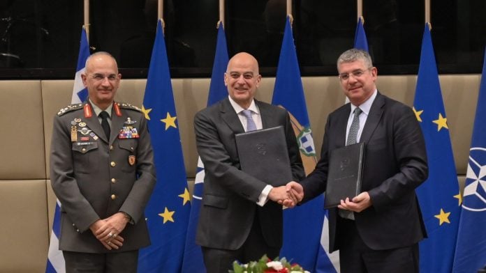 Προγραμματική συμφωνία που προσφέρει στις ελληνικές Ένοπλες Δυνάμεις τη δυνατότητα της περαιτέρω ενεργειακής τους αναβάθμισης, υπέγραψε σήμερα ο υπουργός Εθνικής Άμυνας Νίκος Δένδιας που υποδέχθηκε στο υπουργείο Εθνικής Άμυνας τον αντιπρόεδρο της Ευρωπαϊκής Τράπεζας Επενδύσεων (ΕΤΕπ) Ιωάννη Τσακίρη.