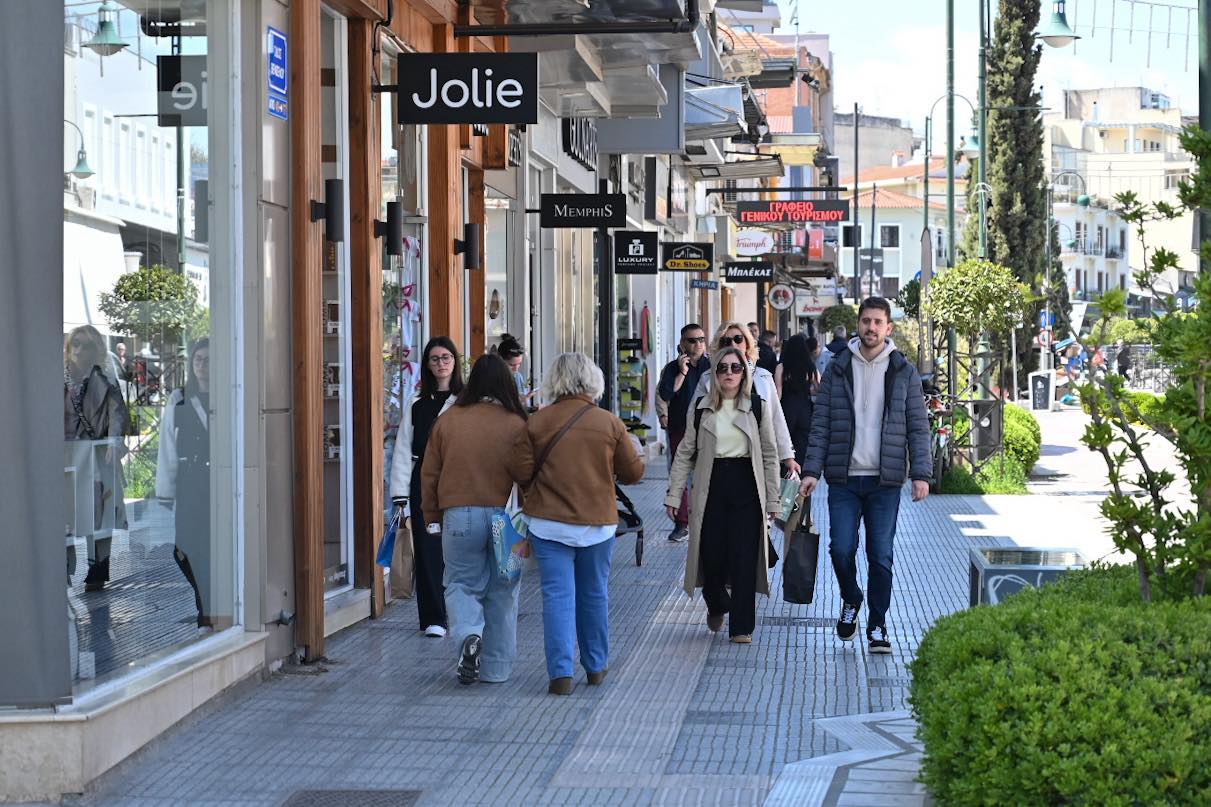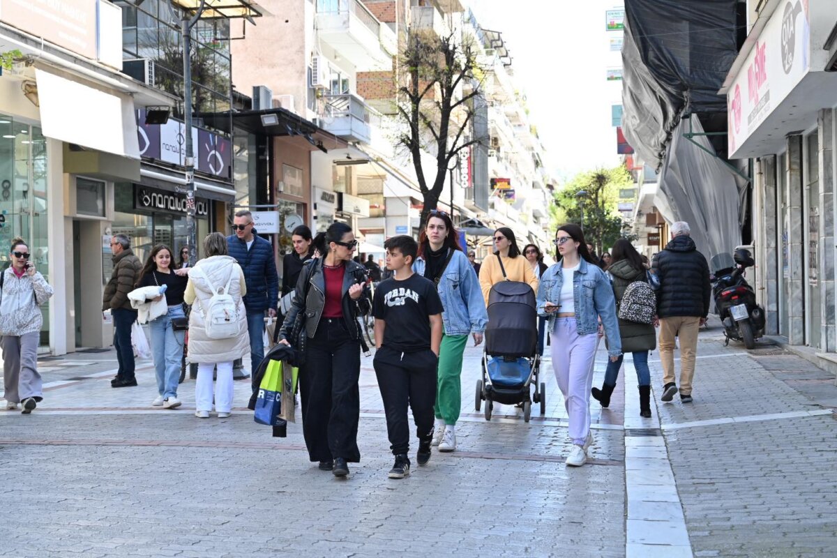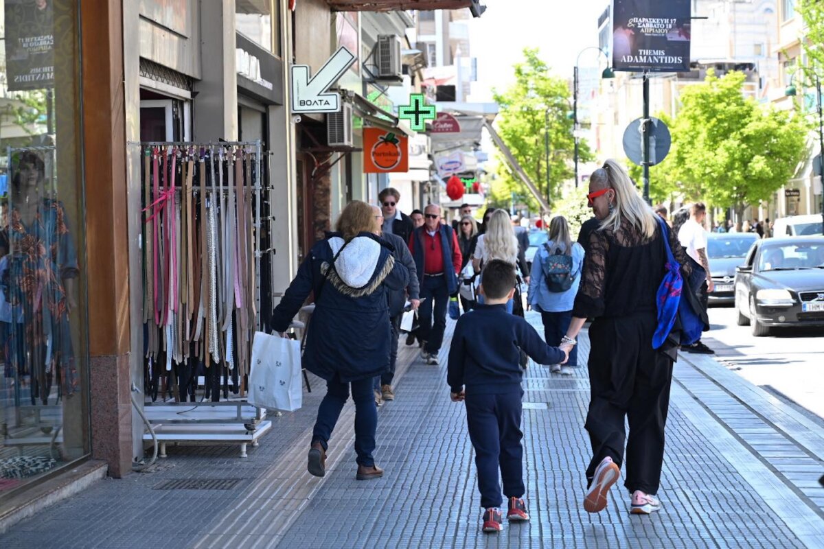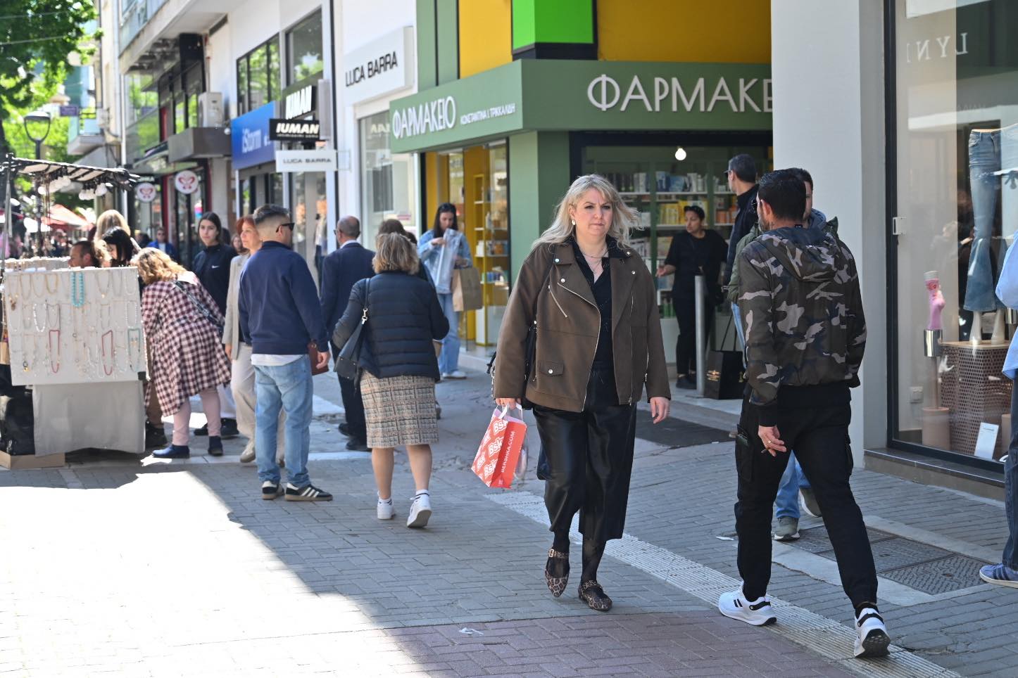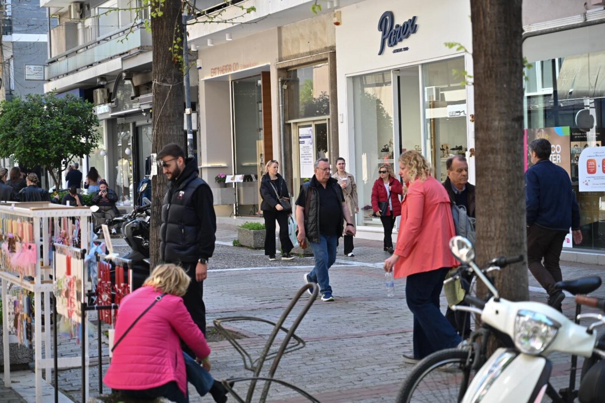 Με σύμμαχο τον καλό καιρό, Λαρισαίες και Λαρισαίοι κατέκλυσαν σήμερα Μ. Πέμπτη το κέντρο της πόλης για να κάνουν τις πασχαλινές τους αγορές, ενόψει των εορταστικών ημερών.