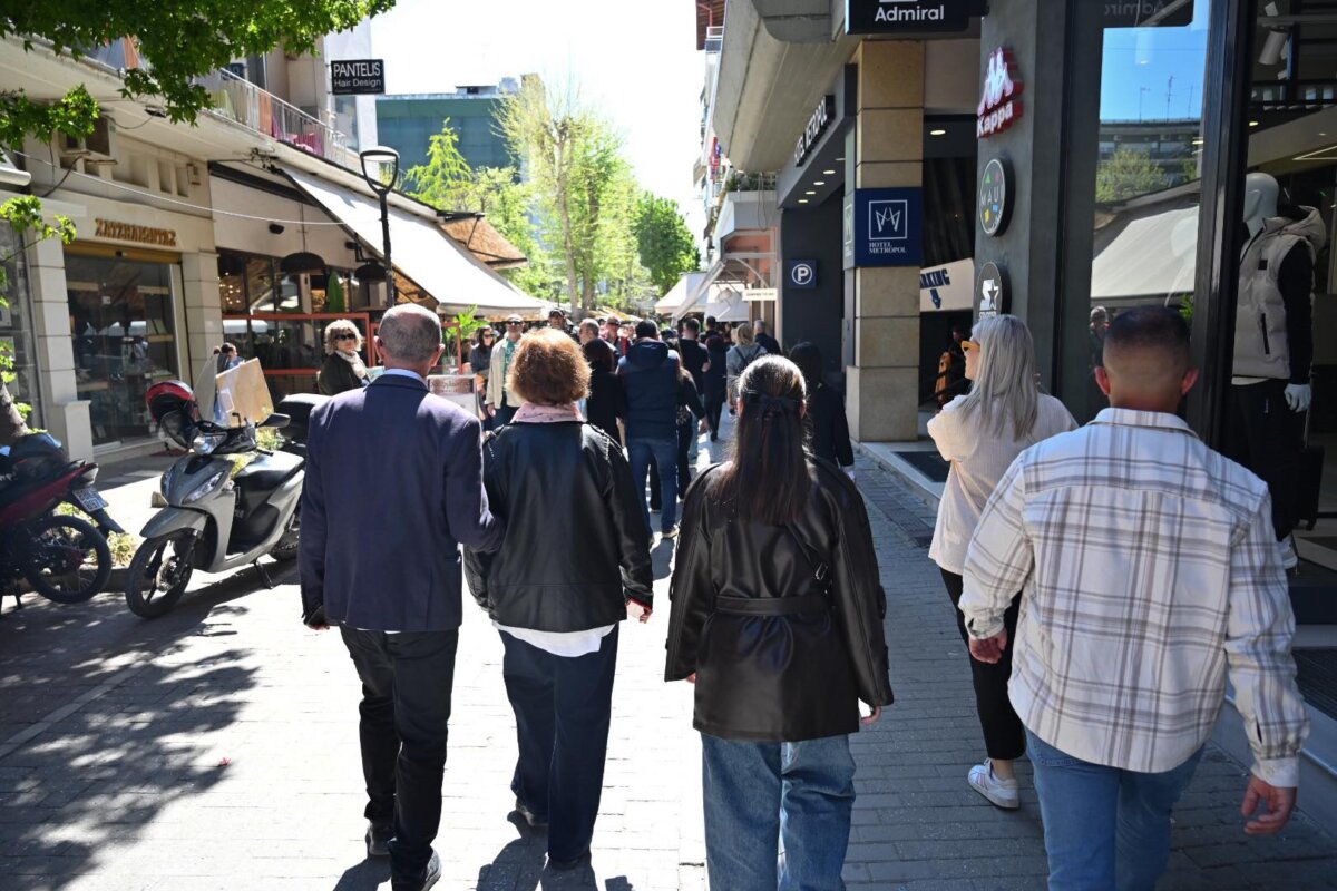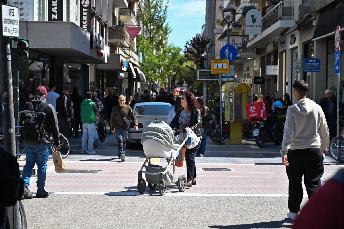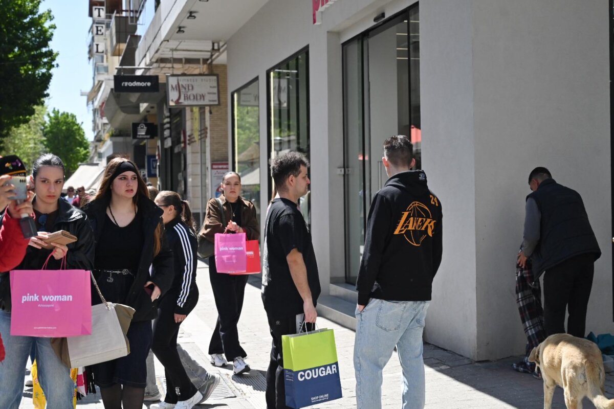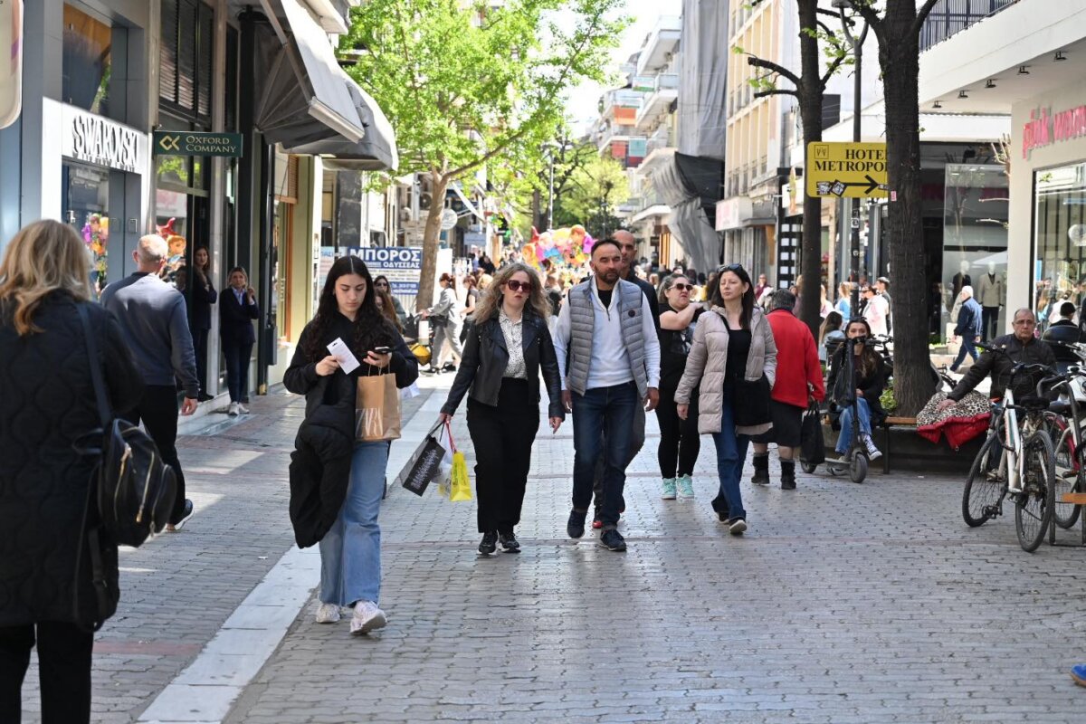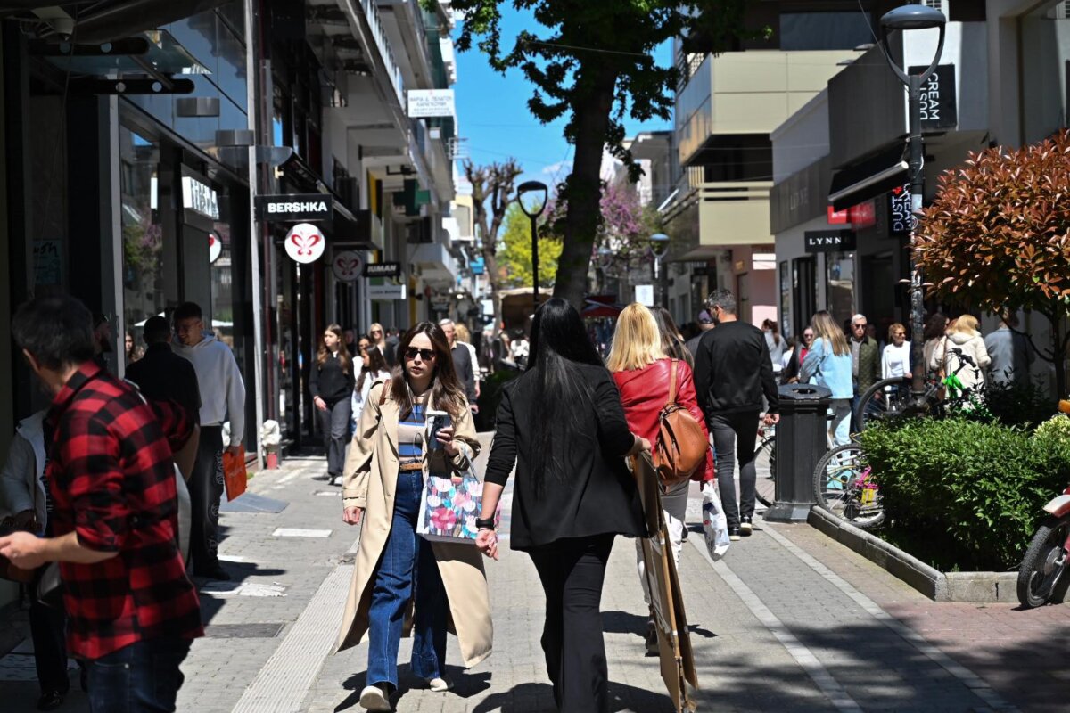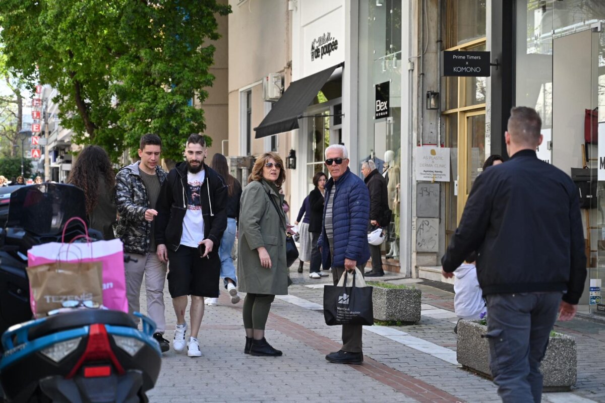 Με σύμμαχο τον καλό καιρό, Λαρισαίες και Λαρισαίοι κατέκλυσαν σήμερα Μ. Πέμπτη το κέντρο της πόλης για να κάνουν τις πασχαλινές τους αγορές, ενόψει των εορταστικών ημερών.