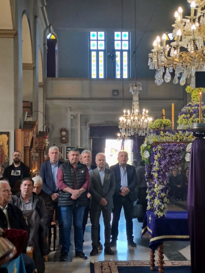 Στη συνέχεια, ο Δήμαρχος παρακολούθησε με κατάνυξη την Ακολουθία της Αποκαθήλωσης στον Ιερό Ναό Αγίων Κωνσταντίνου και Ελένης.