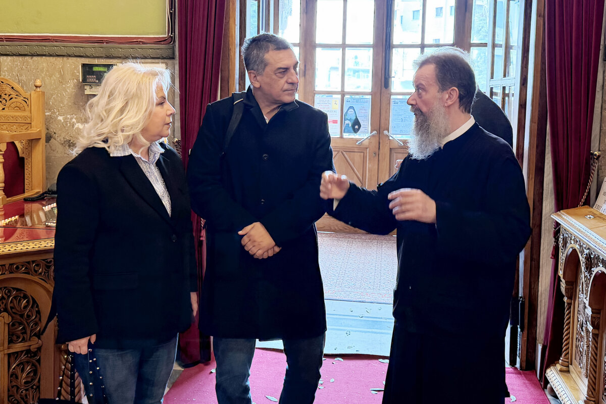 Η παρουσία του Περιφερειάρχη ξεκίνησε από τον Μητροπολιτικό Ναό του Αγίου Νικολάου, όπου συνομίλησε σε θερμό κλίμα με το εκκλησίασμα και τους ιερείς του ναού, υπογραμμίζοντας τον πνευματικό και κοινωνικό ρόλο της Εκκλησίας στη συνοχή της τοπικής κοινωνίας, ειδικά σε περιόδους προκλήσεων.