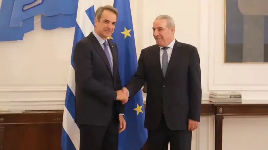 Ο πρωθυπουργός Κυριάκος Μητσοτάκης συναντήθηκε την Παρασκευή (17/04) στο Μέγαρο Μαξίμου με τον αντιπρόεδρο της Παλαιστινιακής Αρχής, Χουσεϊν αλ-Σέιχ.