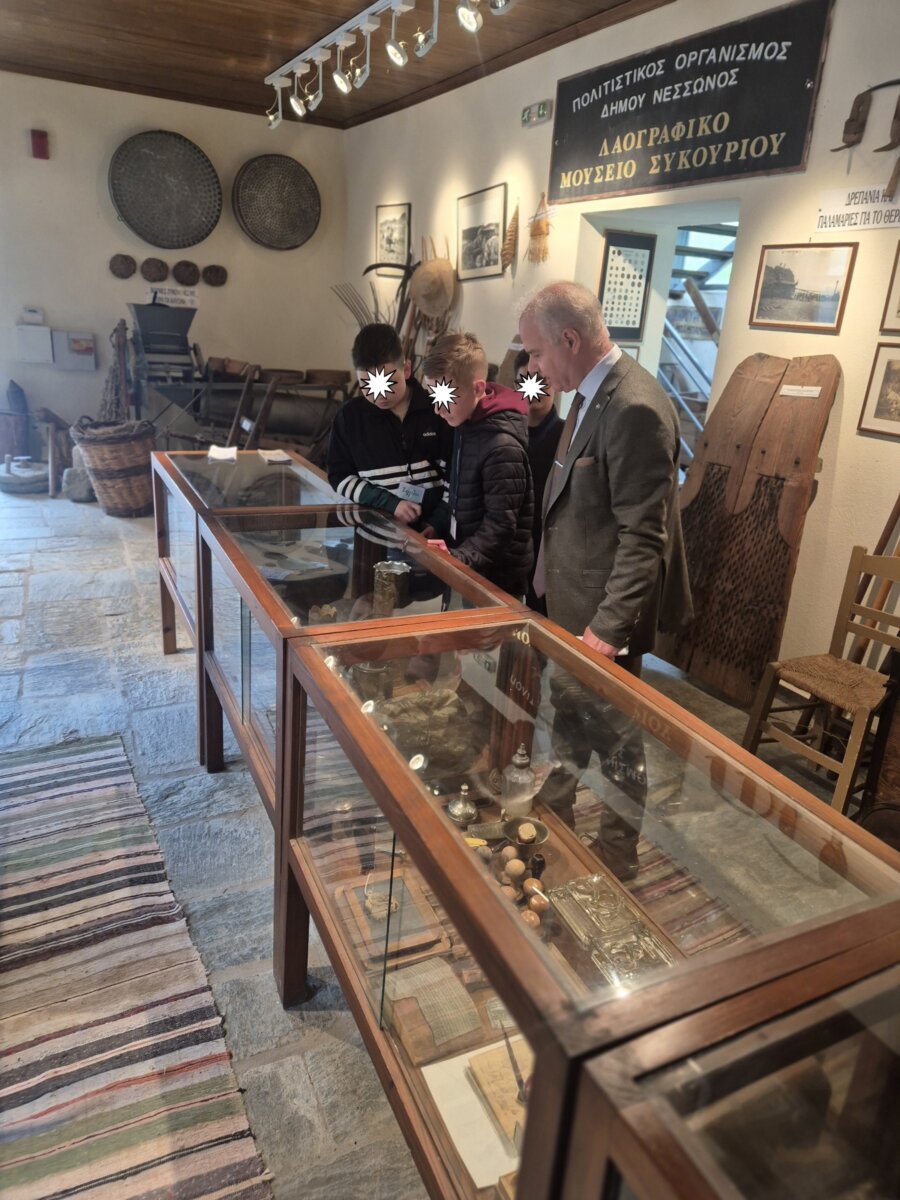 Ο Δήμαρχος Τεμπών επισκέφθηκε το Λαογραφικό Μουσείο, όπου ξεναγήθηκε από τους ίδιους τους μαθητές, οι οποίοι με ενθουσιασμό και υπευθυνότητα παρουσίασαν τα εκθέματα και την ιστορία τους, αποδεικνύοντας τη δυναμική συμμετοχή της νέας γενιάς στη διατήρηση της παράδοσης.