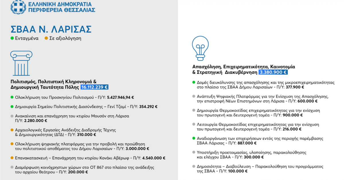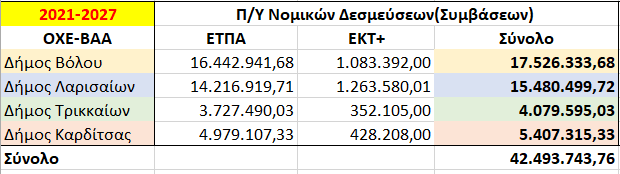 Ο συνολικός προϋπολογισμός των ΣΒΑΑ των 4 πρωτευουσών των ΠΕ Θεσσαλίας