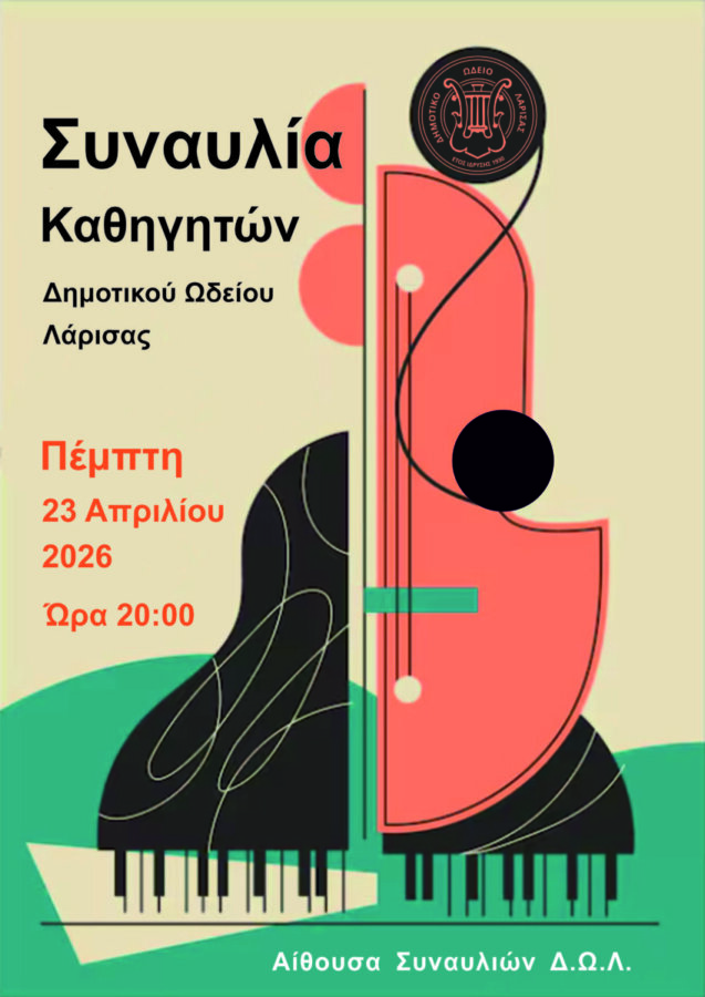 Μια ιδιαίτερη συναυλία θα πραγματοποιηθεί την Πέμπτη 23 Απριλίου και ώρα 20:00 στην Αίθουσα Συναυλιών του Δημοτικού Ωδείου Λάρισας, με τους καθηγητές του να ανεβαίνουν στη σκηνή και να μοιράζονται τη μουσική μέσα από τη δική τους καθημερινή σχέση με αυτήν.