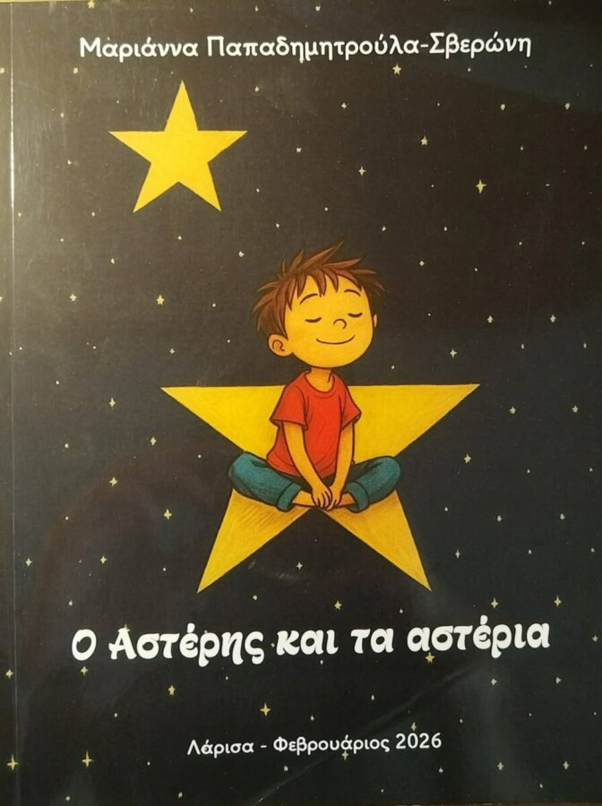 Το παιδικό βιβλίο «Ο Αστέρης και τα αστέρια» της Μαριάννας Παπαδημητρούλα-Σβερώνη, παρουσιάζεται το Σάββατο 25 Απριλίου, στις 6:00 μ.μ., στο Παιδικό Τμήμα της Δημοτικής Βιβλιοθήκης Λάρισας «Αλέξης Μπατζανούλης» (Χατζηγιάννειο Πνευματικό Κέντρο Λάρισας,3ος όροφος). Την εκδήλωση διοργανώνουν η Αντιδημαρχία Πολιτισμού Δήμου Λαρισαίων, η Δημοτική Βιβλιοθήκη Λάρισας «Αλέξης Μπατζανούλης», η Ένωση Λογοτεχνών-Συγγραφέων Λάρισας (Ε.ΛΟ.ΣΥ.Λ.) και οι Εκδόσεις «Γραφή».