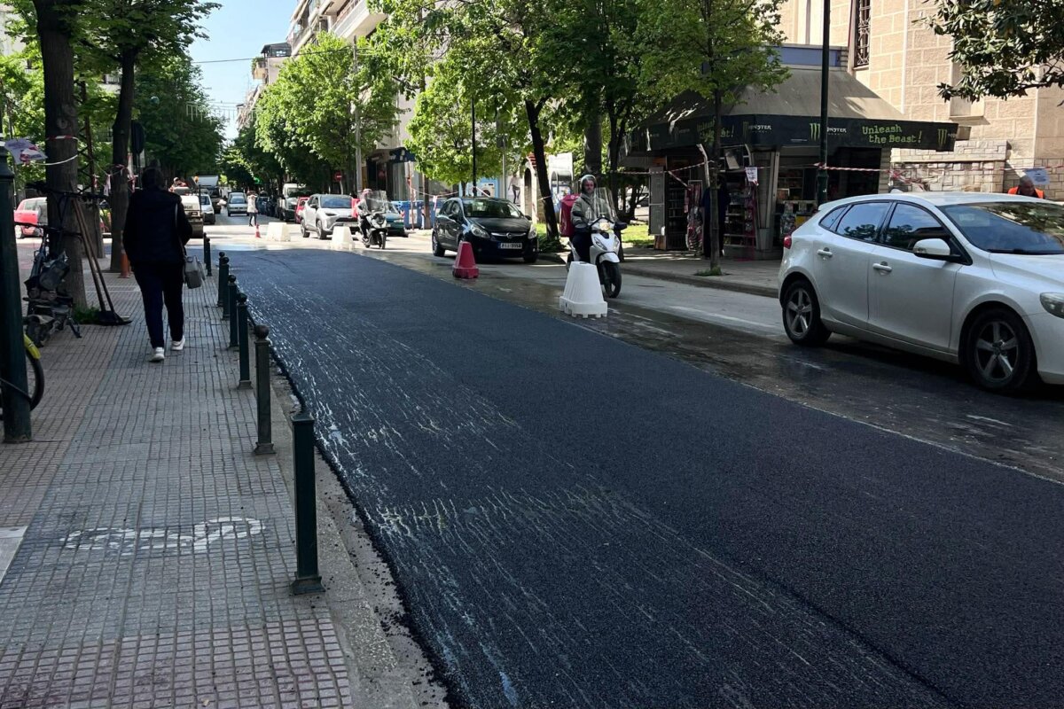 Εργασίες ασφαλτόστρωσης εκτελούνται σε μέρος της οδού Παπαναστασίου.