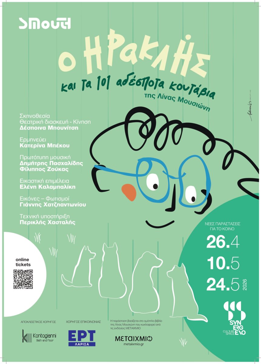 Mετά την επιτυχία του πρώτου κύκλου παραστάσεων για το κοινό, η παιδική παράσταση «Ο Ηρακλής και τα 101 αδέσποτα κουτάβια» του Συνεργείου Μουσικού Θεάτρου (ΣΜουΘ) συνεχίζεται μεδεύτερο κύκλο παραστάσεων για το κοινό στο SYNERGEIO Χώρος Πολιτισμού.