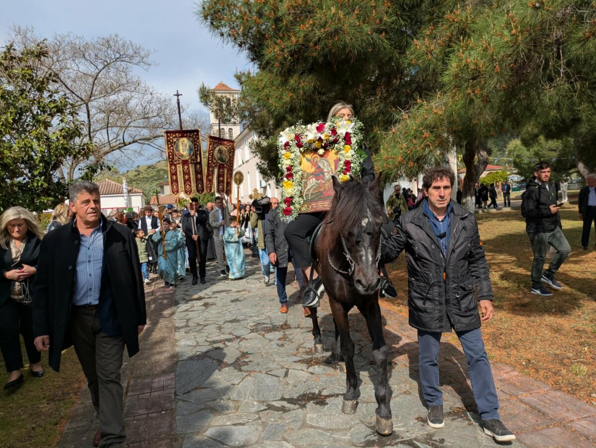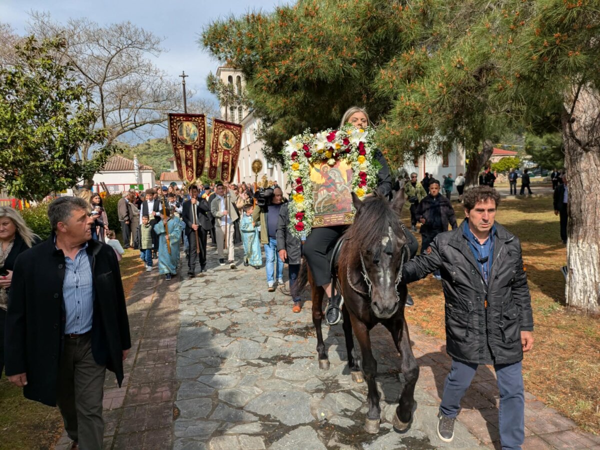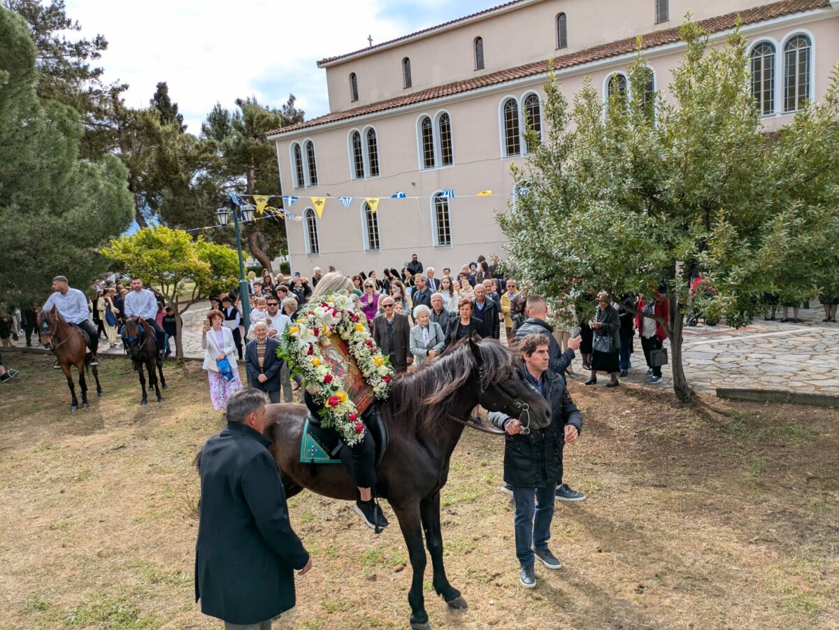 Ξεχωριστό χρώμα στην ημέρα έδωσε ο ιππικός όμιλος της περιοχής, ο οποίος συμμετείχε ενεργά στην περιφορά της ιερής εικόνας στους δρόμους του χωριού. Οι καβαλάρηδες, τηρώντας το τοπικό έθιμο, συνόδευσαν την εικόνα δημιουργώντας μια κατανυκτική αλλά και εντυπωσιακή ατμόσφαιρα, που συγκίνησε τους παρευρισκόμενους.