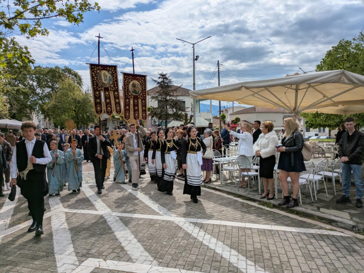 Μετά την ολοκλήρωση της θρησκευτικής τελετής, η γιορτή μεταφέρθηκε στην κεντρική πλατεία, όπου στήθηκε παραδοσιακό γλέντι. Κάτοικοι και επισκέπτες είχαν την ευκαιρία να διασκεδάσουν με μουσική, χορό και τοπικά εδέσματα, σε ένα κλίμα χαράς.