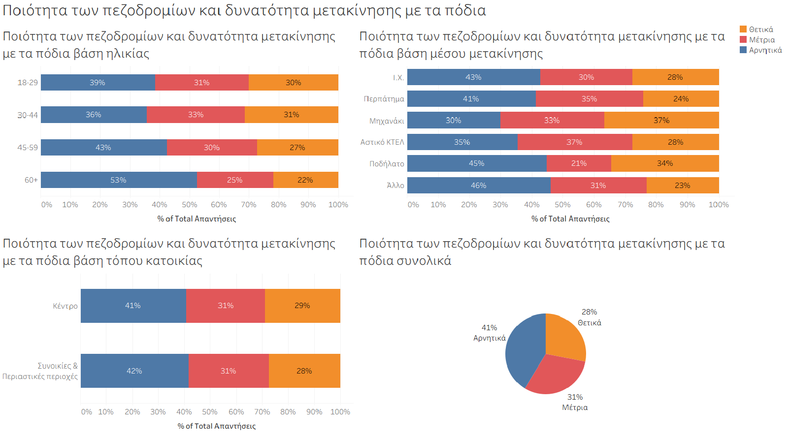 Ταυτόχρονα, αναδεικνύεται η ανάγκη για σημαντική βελτίωση των υποδομών για πεζούς και ποδηλάτες, καθώς τα πεζοδρόμια σε πολλές περιπτώσεις κρίνονται ανεπαρκή ή μη ασφαλή.