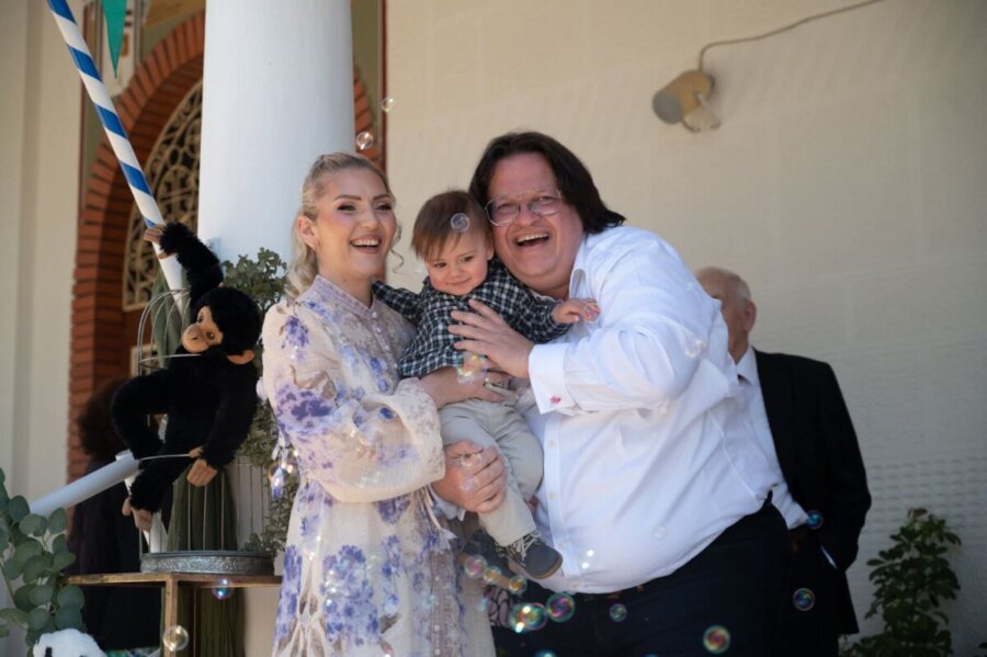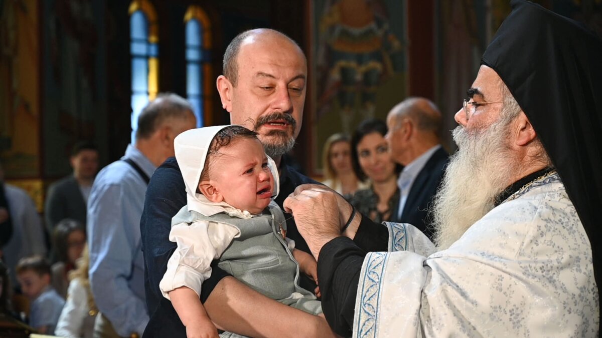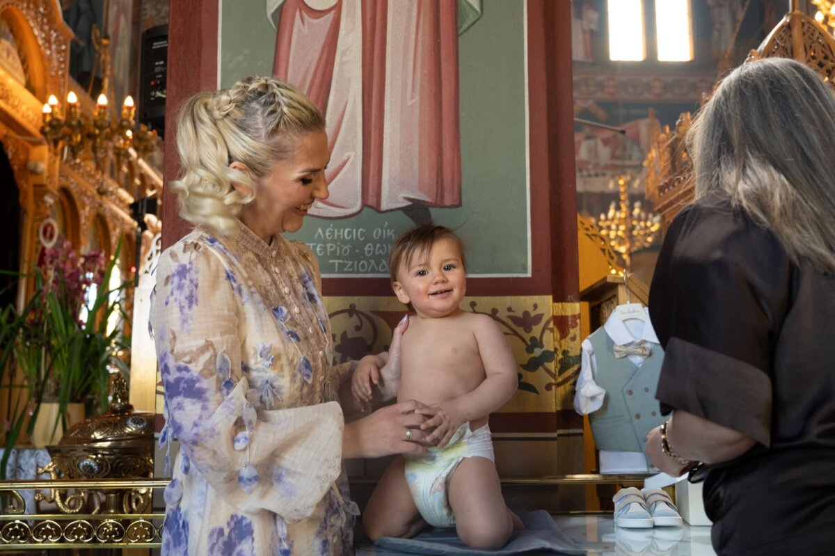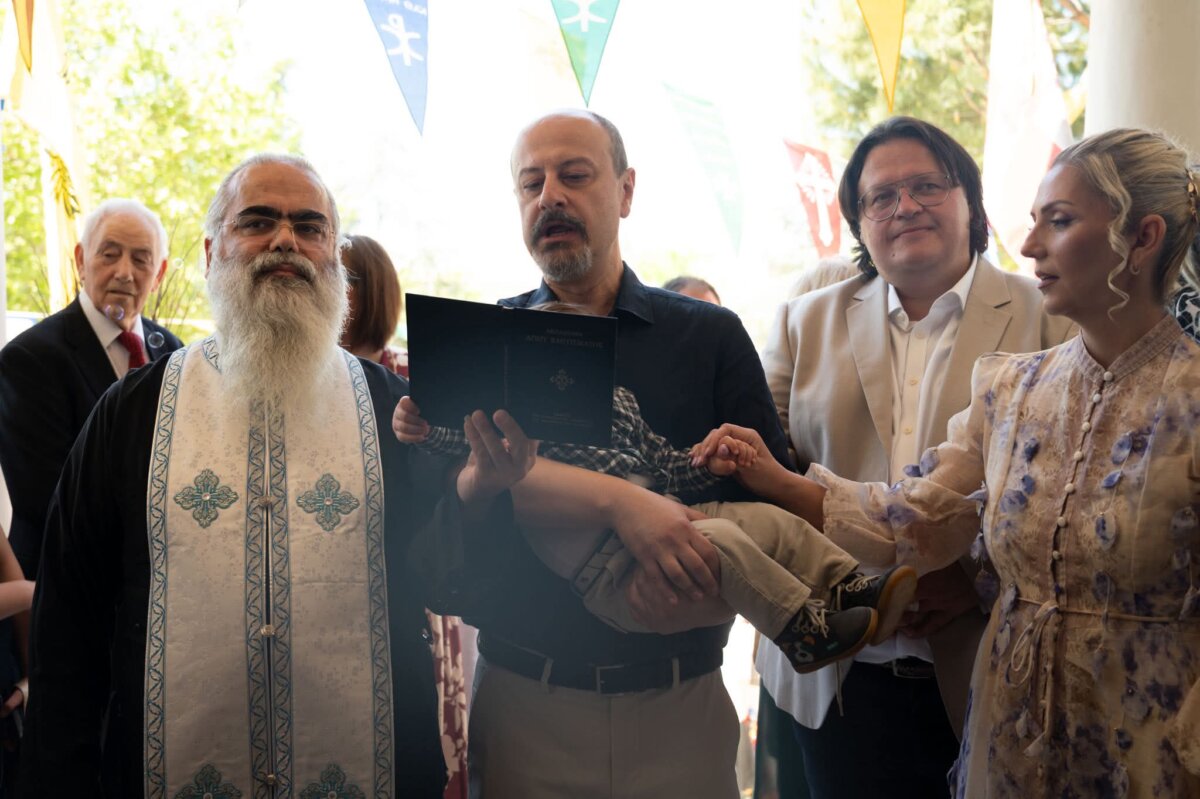 Το μυστήριο τελέστηκε παρουσία των γονέων, Θωμά Παπαλιάγκα και Δόμνας Παπαβασιλείου, ενώ νονός του παιδιού ήταν ο Βασίλης Σαββίδης.