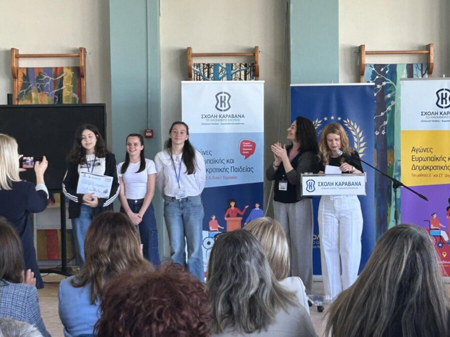 Οι μαθήτριες του τμήματος β1 και β2 Γυμνασίου Καναβούρα Βάια και Μπακούλα Κωνσταντίνα κατέκτησαν το Πρώτο και το Τρίτο Βραβείο αντίστοιχα στο αγώνισμα της εκφραστικής ανάγνωσης, ξεχωρίζοντας για τη φωνητική τους απόδοση, την εκφραστικότητα, τη βαθιά κατανόηση του κειμένου, τη φυσικότητα και ροή του λόγου τους, καθώς και για την ερμηνευτική τους ικανότητα και τη σκηνική τους παρουσία, προσεγγίζοντας με ουσιαστικό τρόπο το φετινό θέμα: «Το Ανθρώπινο Δικαίωμα στη Σύγχρονη Ευρώπη».