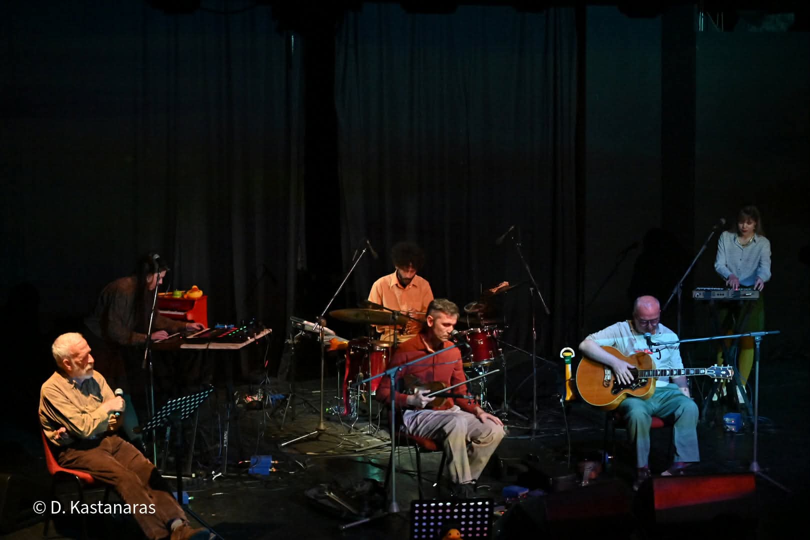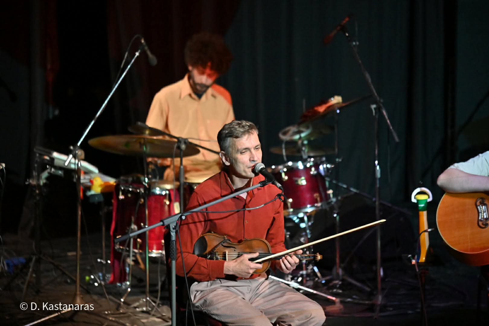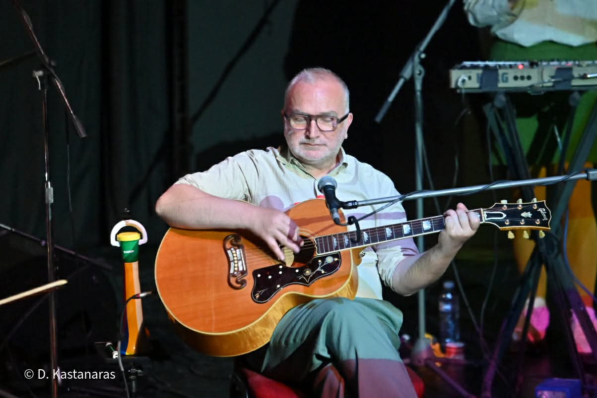 Δίπλα του, δύο από τους πιο ιδιαίτερους καλλιτέχνες της ελληνικής μουσικής σκηνής: ο Αργύρης Μπακιρτζής, η εμβληματική φωνή των “Χειμερινών Κολυμβητών”, με την αφοπλιστική ερμηνεία και το ξεχωριστό του χιούμορ, και ο Φώτης Σιώτας, δεξιοτέχνης βιολιστής και τραγουδιστής, με πορεία που έχει αφήσει ανεξίτηλο στίγμα στη σύγχρονη ελληνική μουσική.