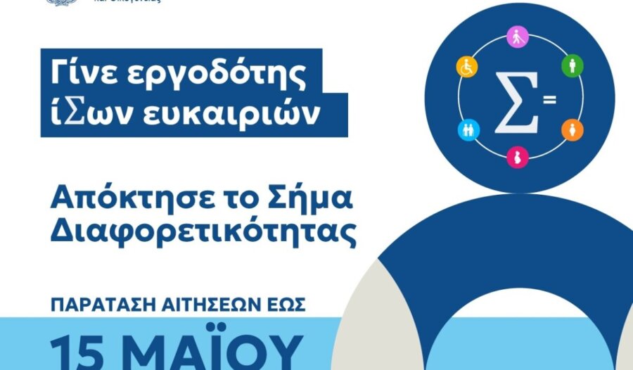 “Το Υπουργείο Κοινωνικής Συνοχής και Οικογένειας σας καλεί να συμμετάσχετε στο «Σήμα Διαφορετικότητας», μια εθνική πρωτοβουλία για την προώθηση της ίσης μεταχείρισης, της διαφορετικότητας και της συμπερίληψης στον χώρο εργασίας.