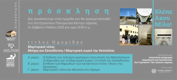 Το Παράρτημα Λάρισας της Πανελλήνιας Ενωσης Συνταξιούχων Εκπαιδευτικών (ΠΕΣΕΚ) σε συνεργασία με την ΕΛΜΕ Λάρισας και το Σύλλογο Εκπαιδευτικών Π.Ε. Λάρισας "Κωνσταντίνος Κούμας" συνδιοργανώνουν...